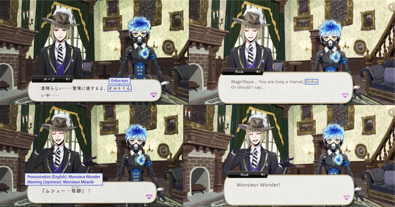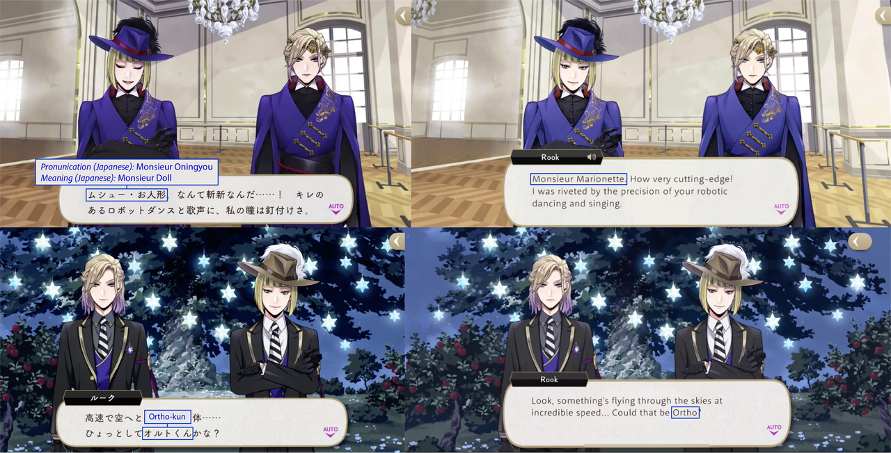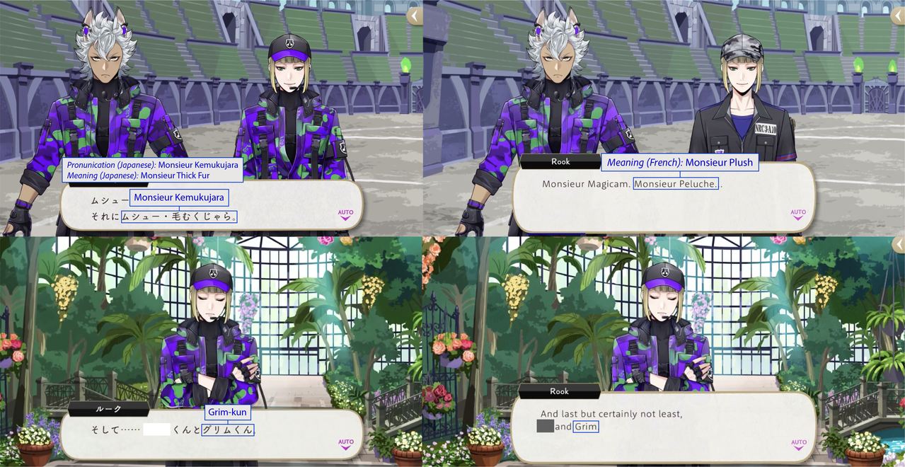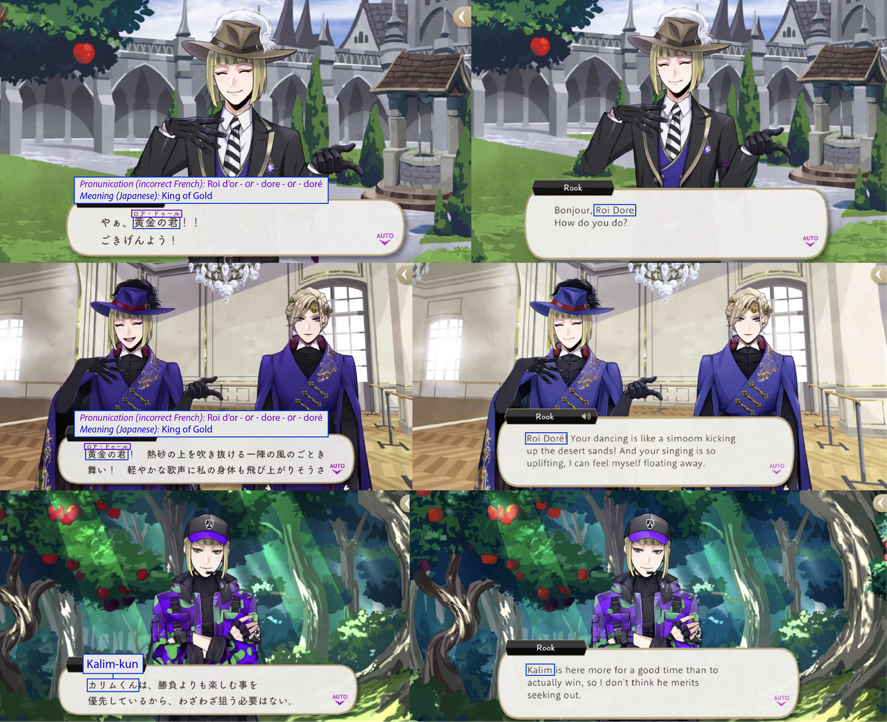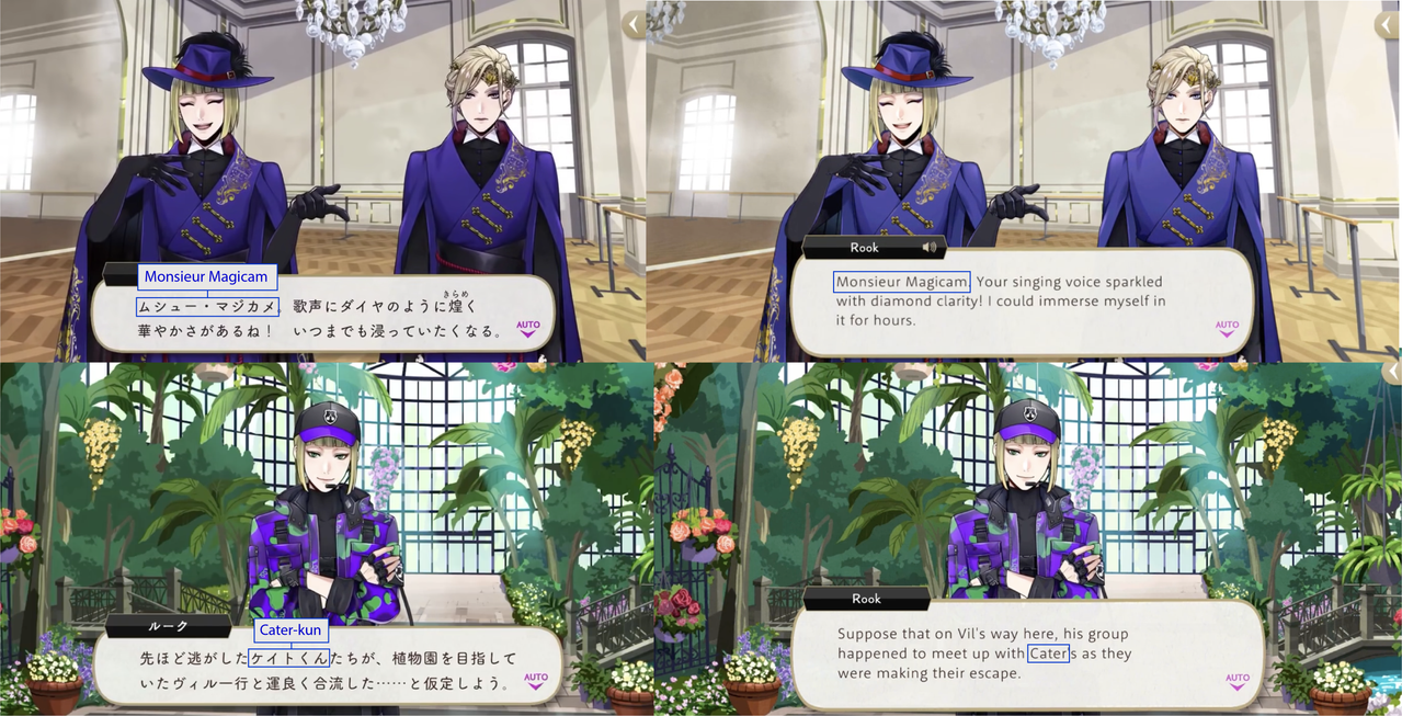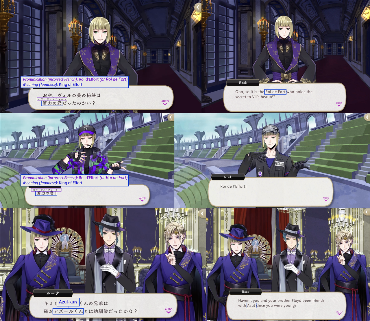 (While both Trey and Riddle have “roses” in the meaning of their nicknames, Riddle’s is translated while Trey’s is not: his “roses” pronunciation is in Japanese)
