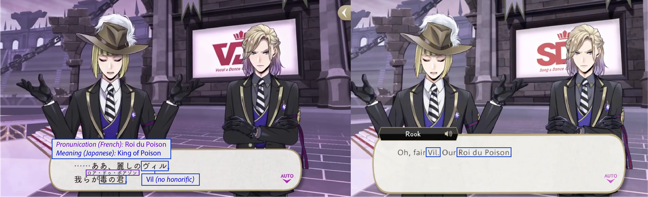 (Vil is the only person for whom Rook does not use an honorific, using “-kun” for all other characters when using first names, which he does often.)