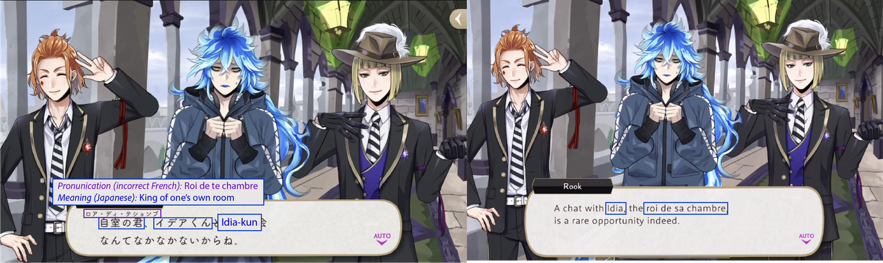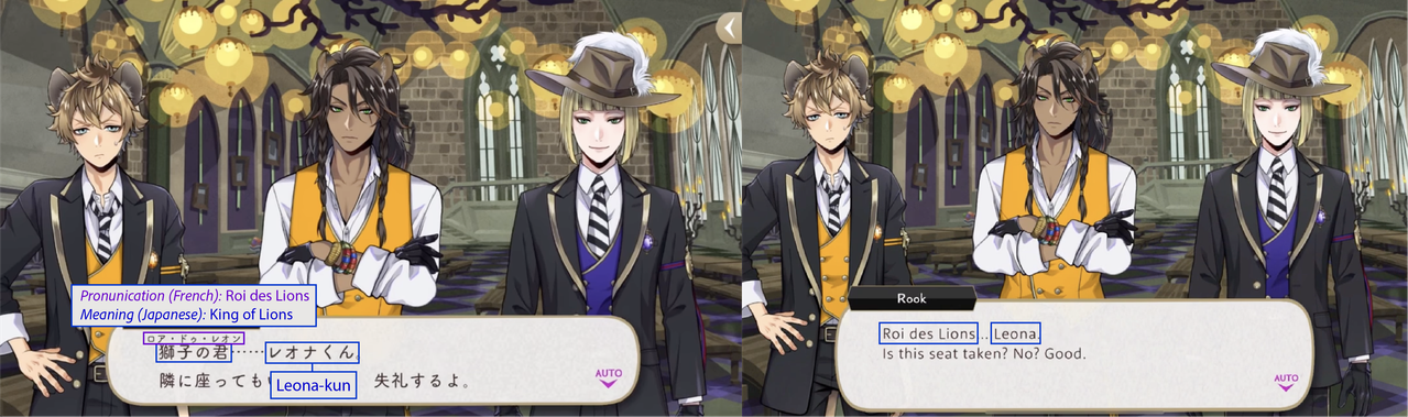 (While both Trey and Riddle have “roses” in the meaning of their nicknames, Riddle’s is translated while Trey’s is not: his “roses” pronunciation is in Japanese)