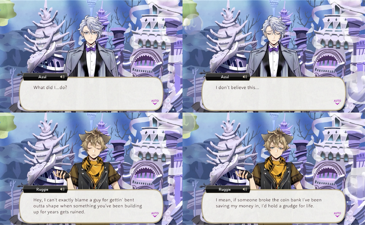 After Azul’s overblot Ruggie empathizes, saying, “I can’t exactly blame a guy for gettin’ bent outta shape when something you’ve been building up for years gets ruined. I mean, if someone broke the coin bank I’ve been saving my money in, I’d hold a grudge for life.”