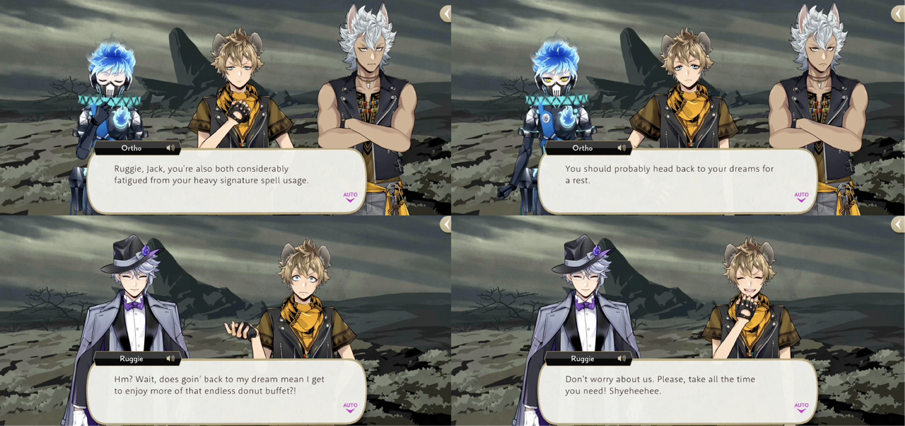 After being told that he should return to his dream to recover after awakening Leona Ruggie says, “Wait, does goin’ back to my dream mean I get to enjoy more of that endless donut buffet?!…Please, take all the time you need!”