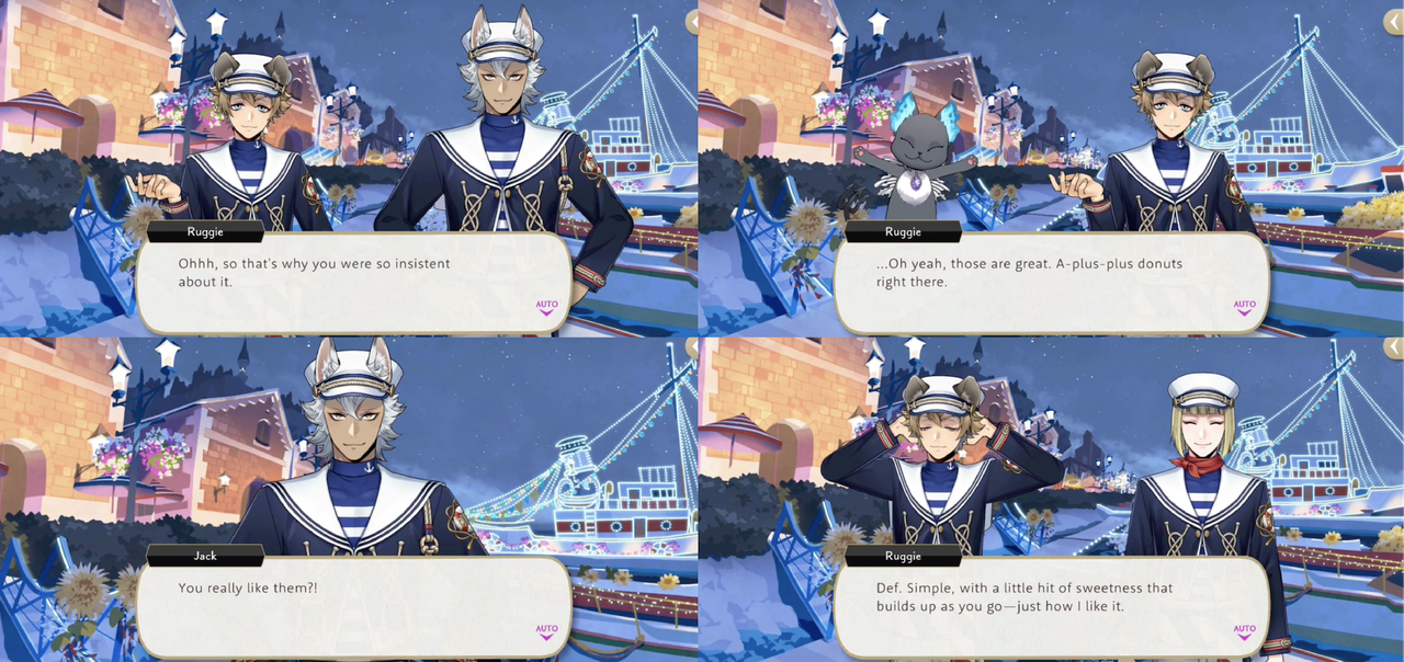 Jack says that he wanted Ruggie to try them because he knows that Ruggie loves doughnuts and Ruggie says that while the doughnuts are top tier, they were not worth the effort of Port Fest. Jack agrees.