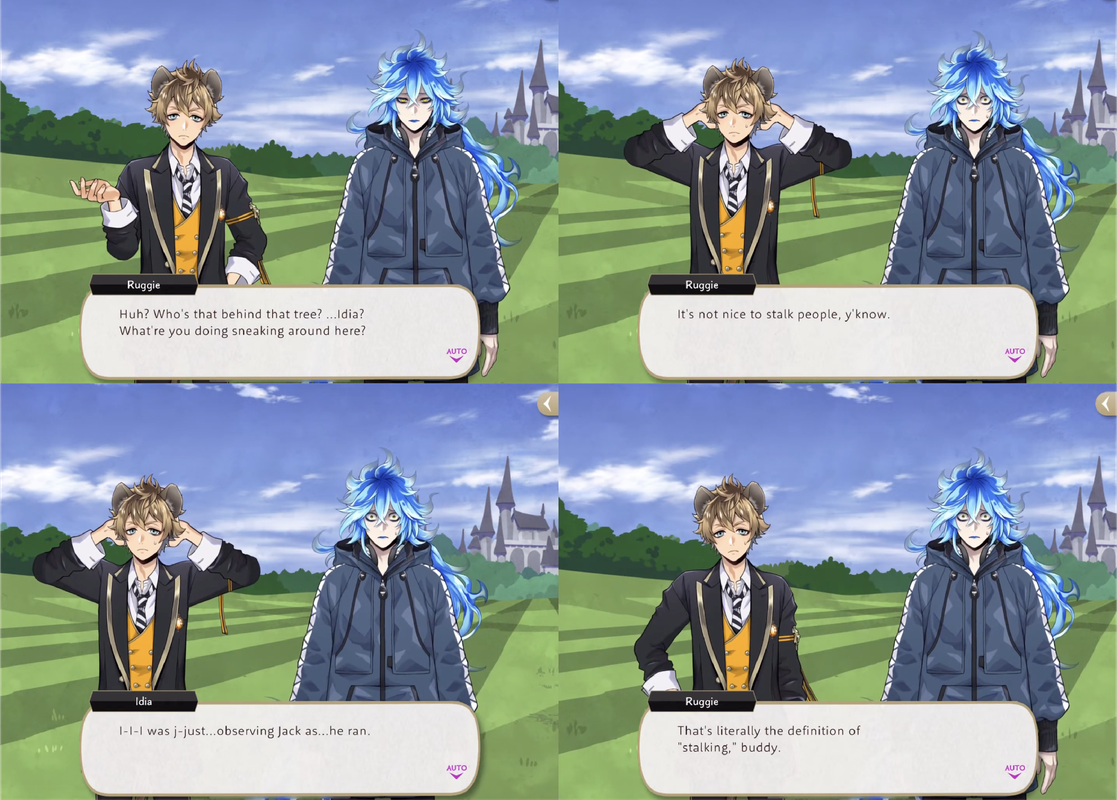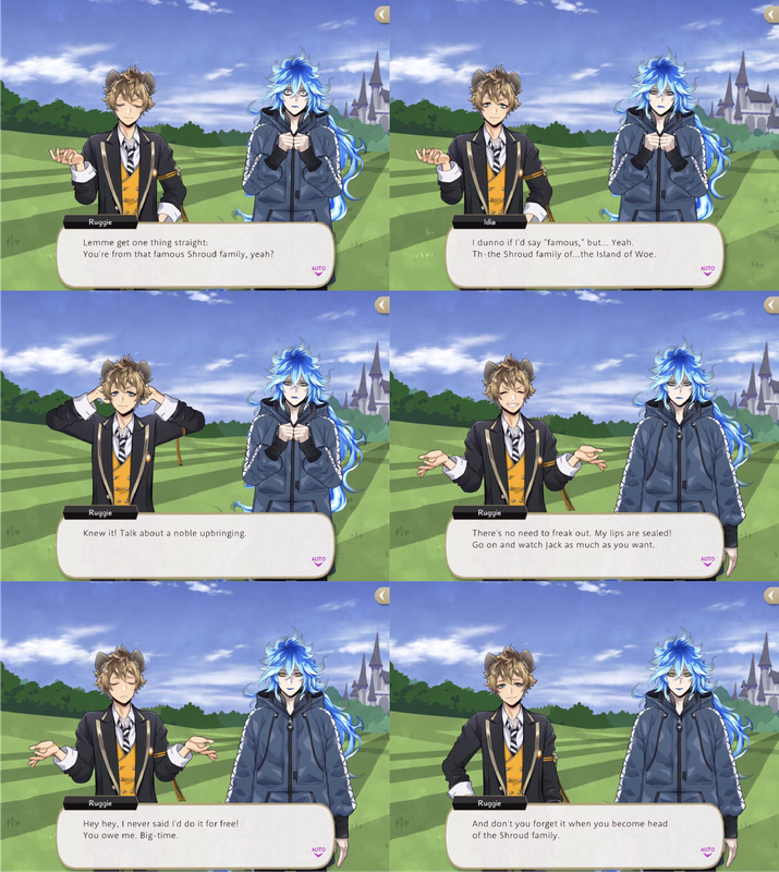 Idia and Ruggie overlap in an early vignette where Ruggie happens upon Idia taking notes on Jack’s physique as he runs.