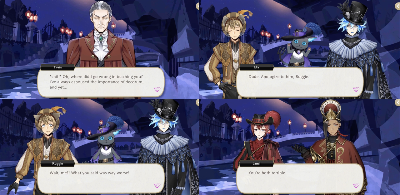 When Trein becomes so upset that he begins to cry Idia tells Ruggie to apologize, while Ruggie argues that what Idia said was way worse (Jamil: “You’re both terrible”).