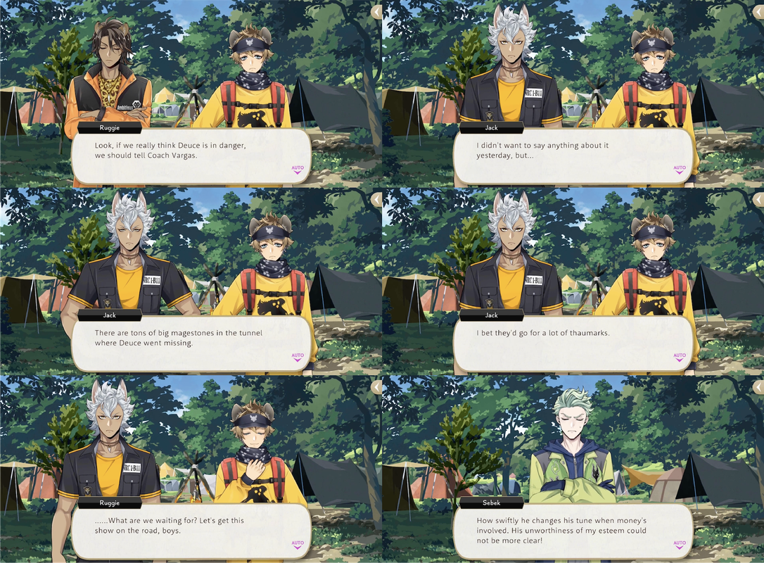 Jack seems to be taking Ruggie’s efforts to heart: in a voice line he says he might be looking to start aspiring “to be like Ruggie and not sweat the little things. But don’t tell him I said that!” and, during Vargas Camp, we see Jack successfully convince Ruggie to join a search in the mines for Deuce by tempting him with magestones.