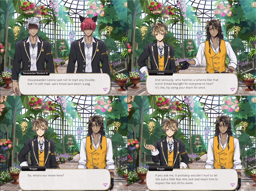 When Ruggie and Leona overhear their fellow dormmates plotting to “knock Jack down a peg” out of jealousy over his athletic talents, Ruggie tells Leona, “It probably wouldn’t hurt to let ‘em put a little fear into Jack and teach him to respect the rest of his dorm”. Leona decides to protect Jack anyway, with Ruggie having to intervene to keep him from using his unique magic on the bullies.