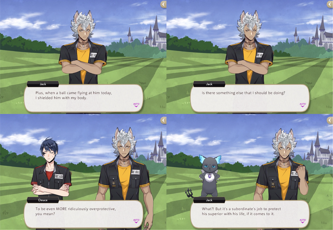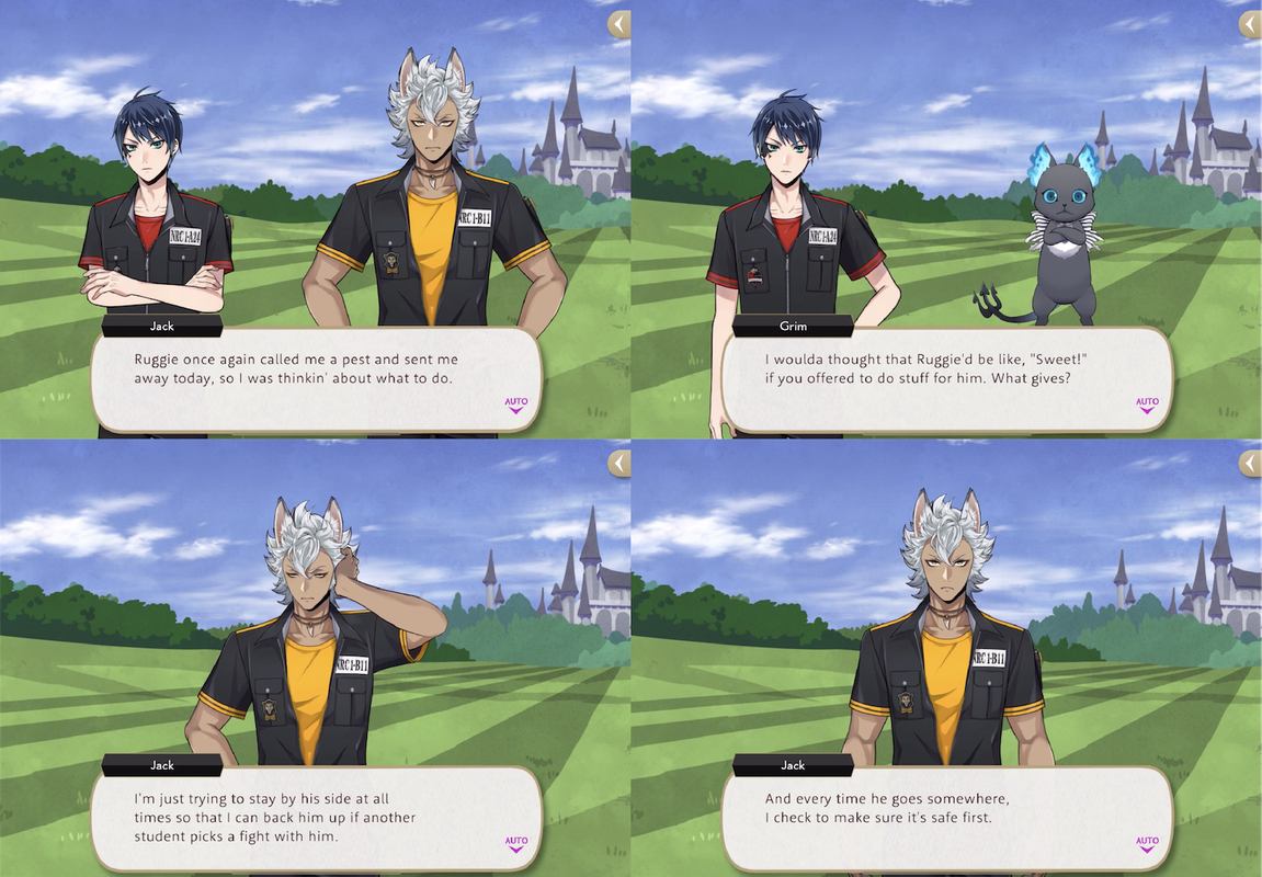 When Grim expresses surprise that Ruggie is so reluctant to accept Jack’s help, Jack explains that he is “just trying to stay by his side at all times so that I can back him up if another student picks a fight with him. And every time he goes somewhere, I check to make sure it’s safe first. Plus, when a ball came flying at him today, I shielded him with my body. Is there something else that I should be doing?”
