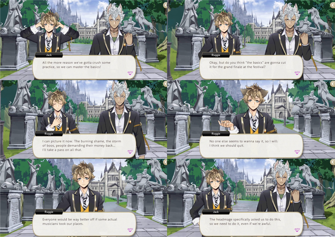 After reflecting on Leona’s likely reactions to Jack’s idea of putting on a subpar show and Ruggie’s idea of calling in the pop music club, they ultimately decide to go in a new direction.