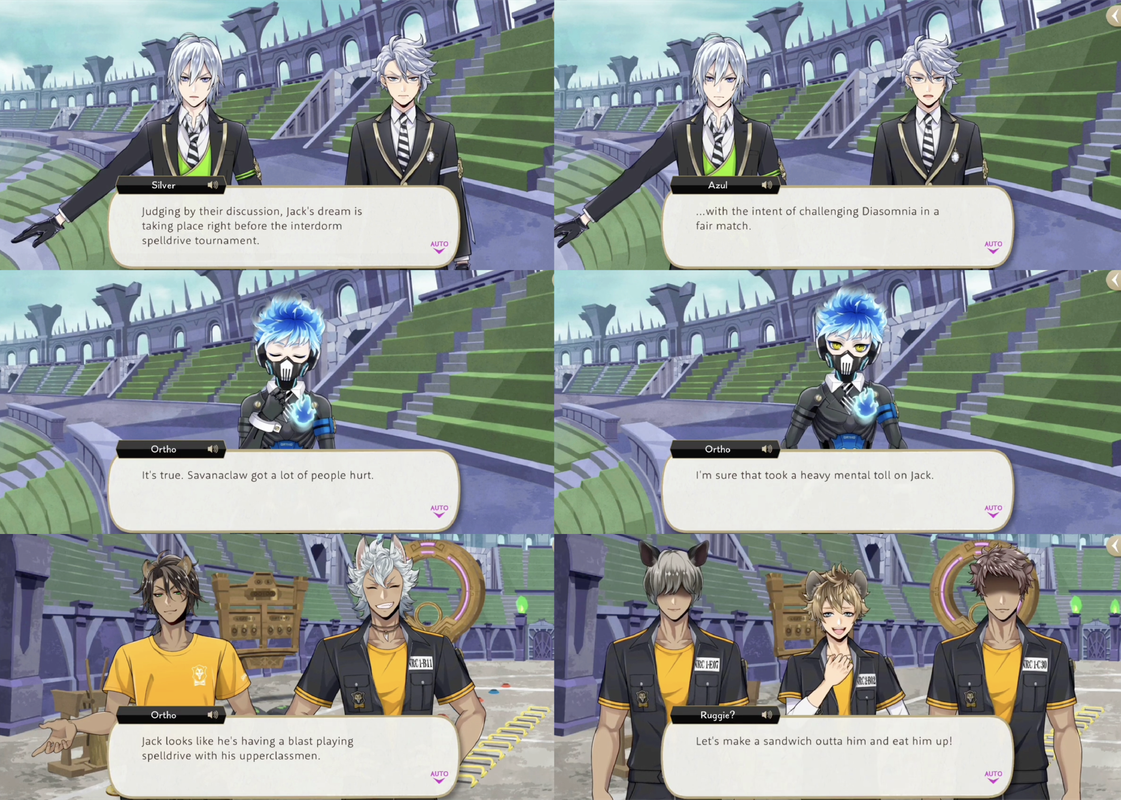 Jack’s dream takes place in an alternate timeline directly before the interdorm spelldrive tournament of Book 2, where he is enjoying practicing the game alongside Leona and Ruggie as they compliment his skills.