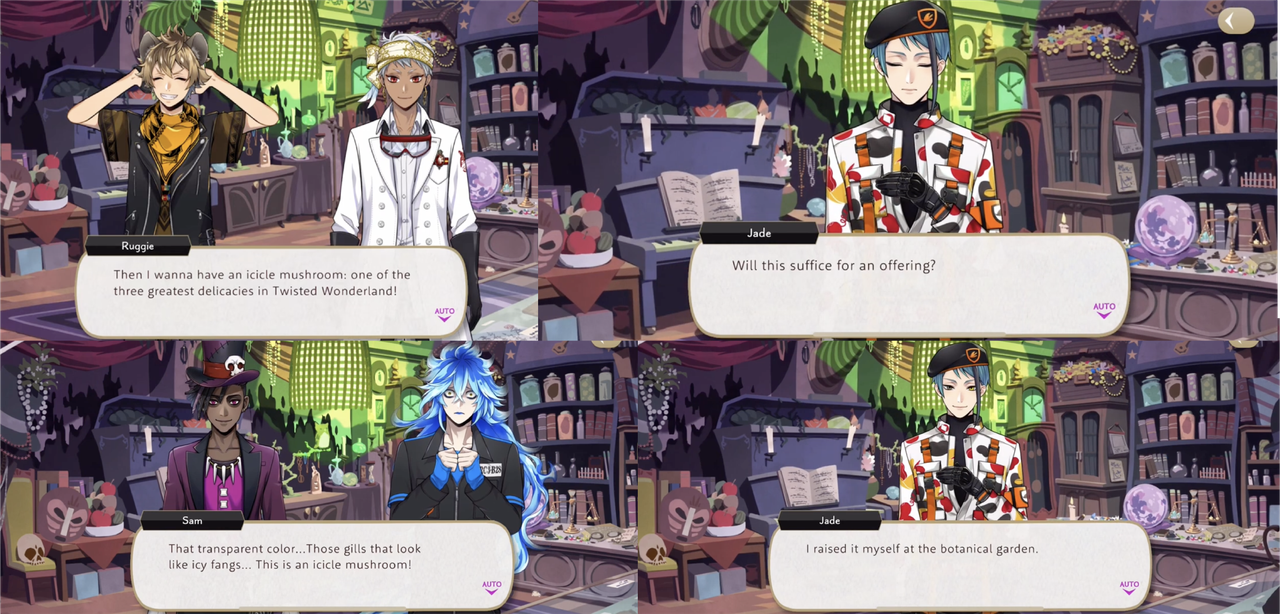In Kalim’s lab wear vignette Ruggie has Kalim purchase one of the three greatest delicacies that exist: an icicle mushroom. This is possibly the same mushroom that Jade raised himself in the botanical gardens and traded to Sam for a weapon during Beanfest.