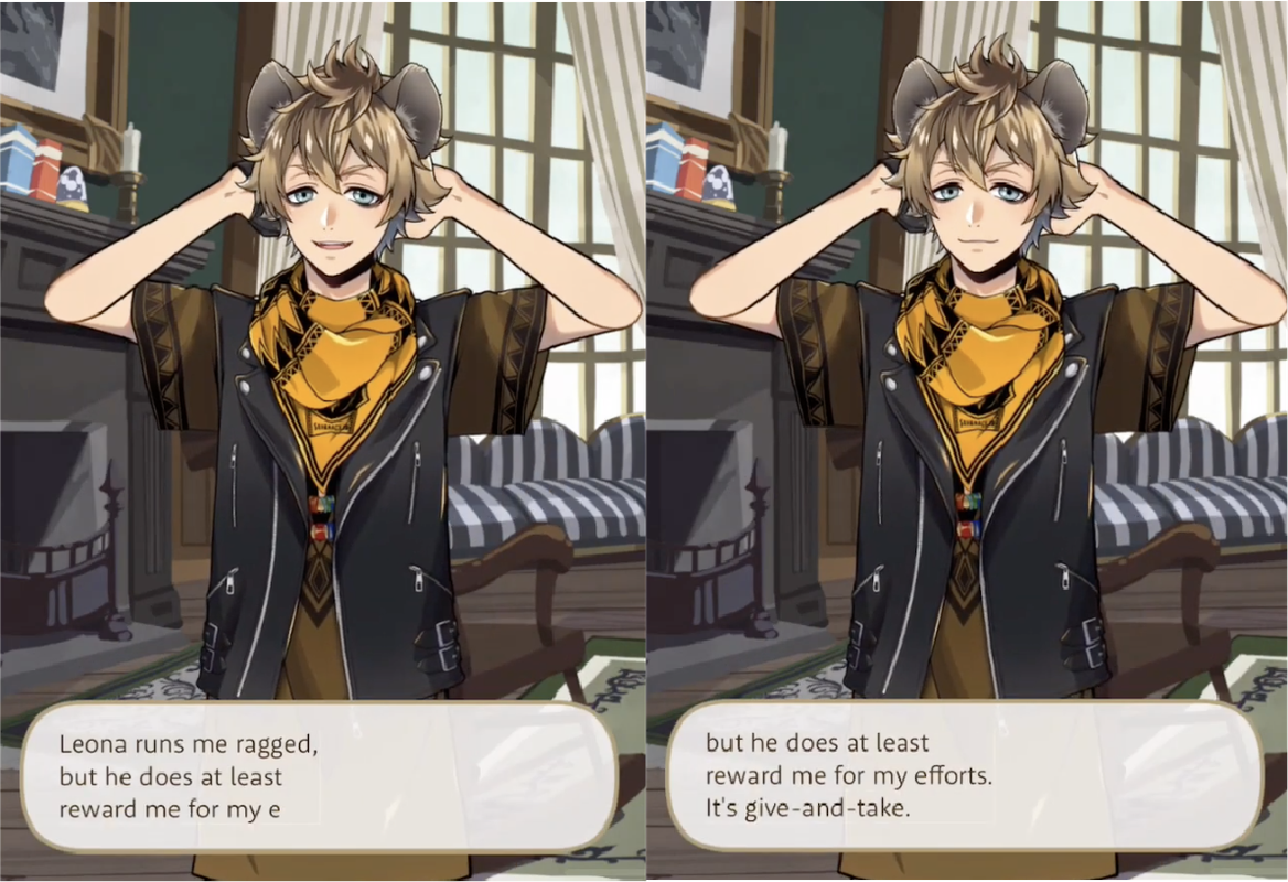 Ruggie also makes repairs to Leona’s clothing, while Ruggie’s school uniform is oversized because “it’s actually an old one of Leona’s”.