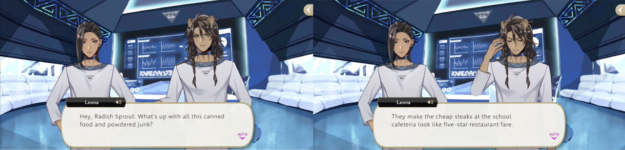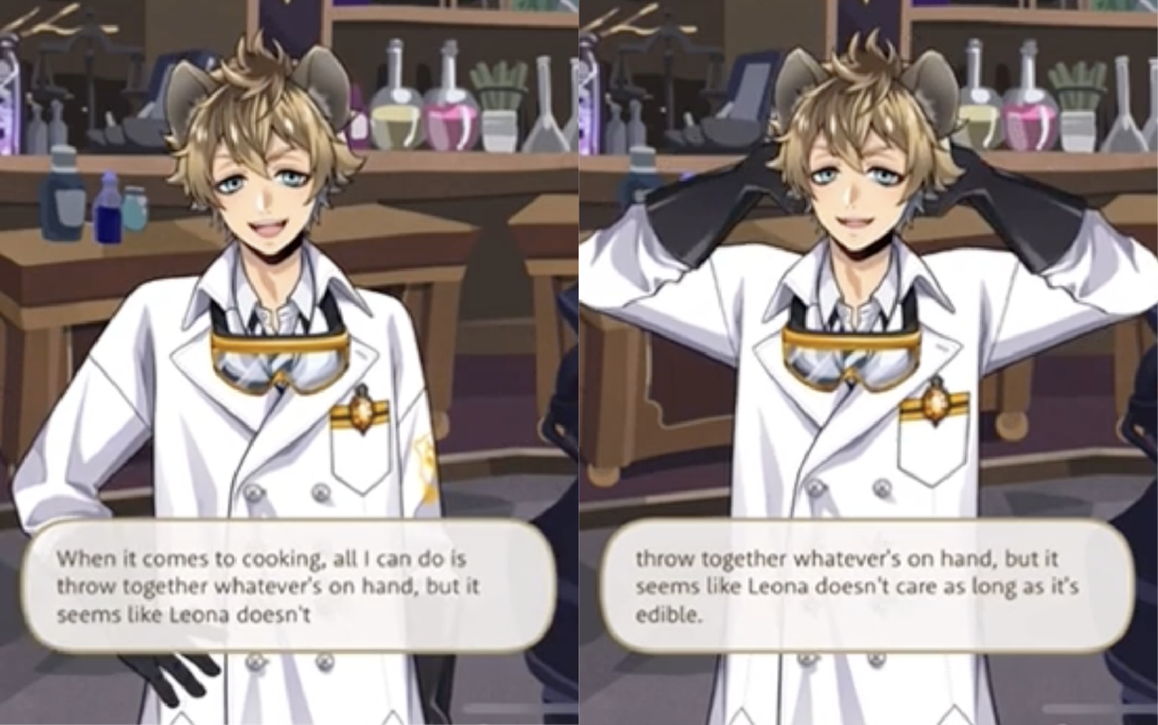 However, we are given hints that—as a prince—Leona does maybe have high expectations for his food: he is one of the strictest judges on the Master Chef course (on par with Vil) and has complained both about the school’s food and the food they are given at STYX.