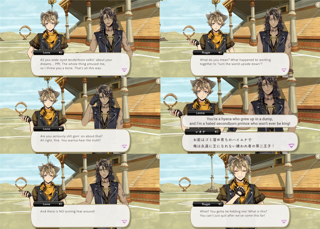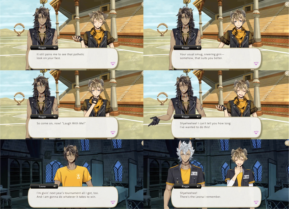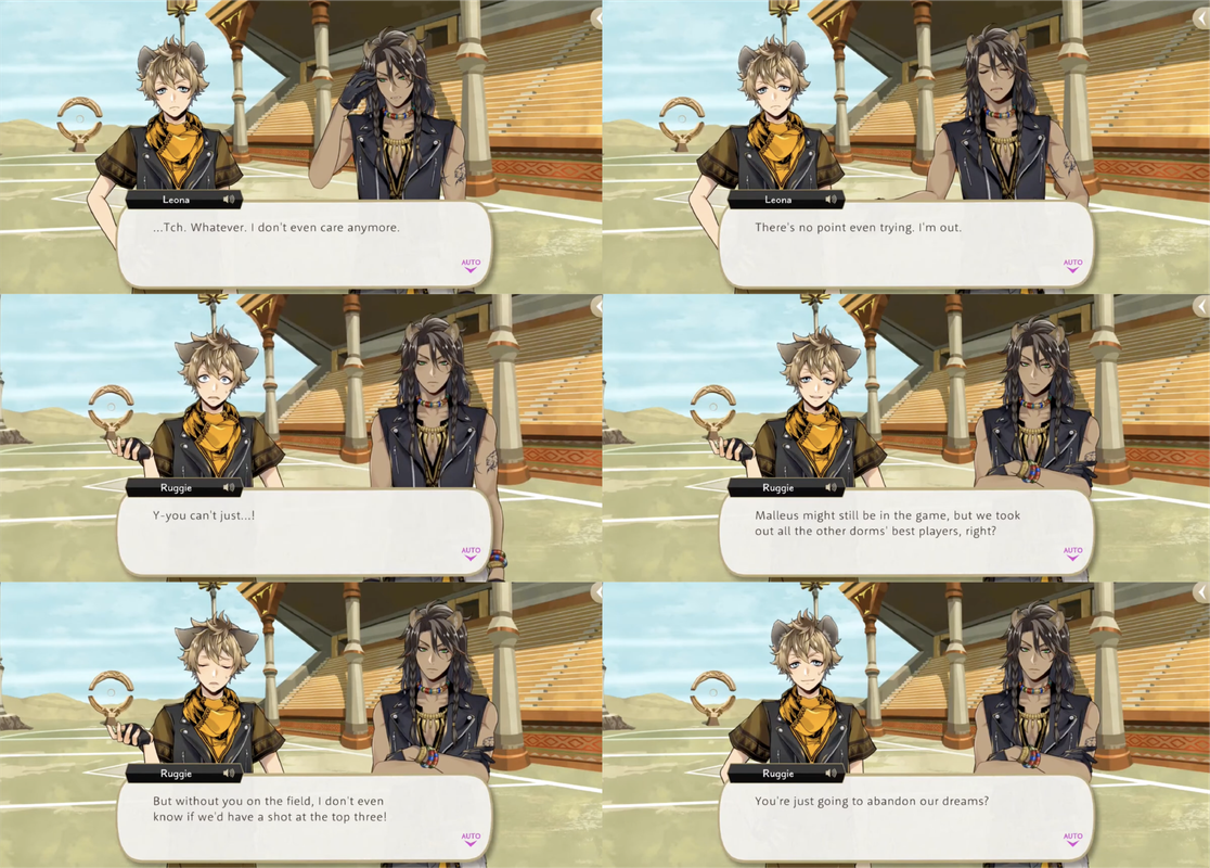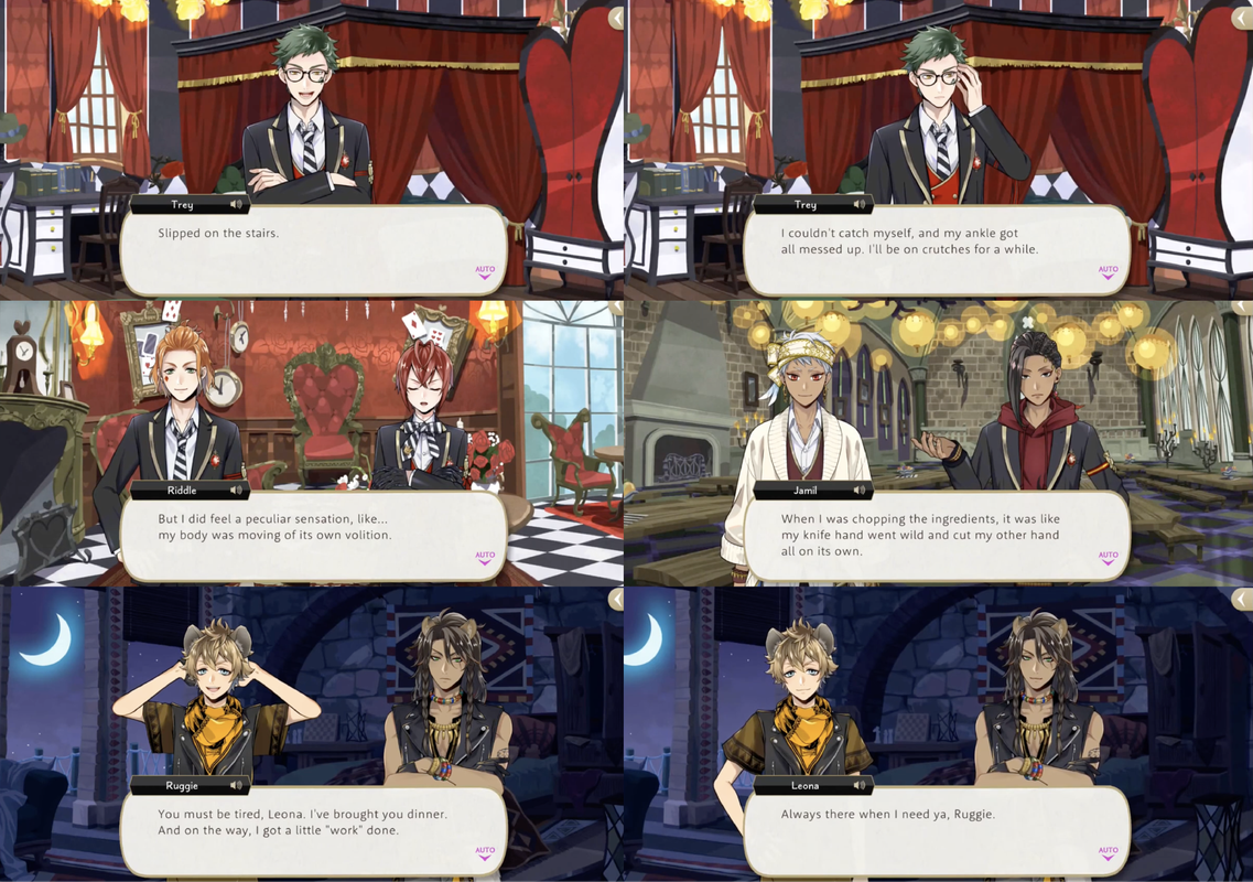 Ruggie tries and fails to convince Leona to try and beat the other dorms in the game instead of abandoning their dreams but Leona claims he was only going along because the others amused him: “You wanna hear the truth? You’re a hyena who grew up in a dump, and I’m a hated secondborn prince who won’t ever be king. And there is no turning that around.”