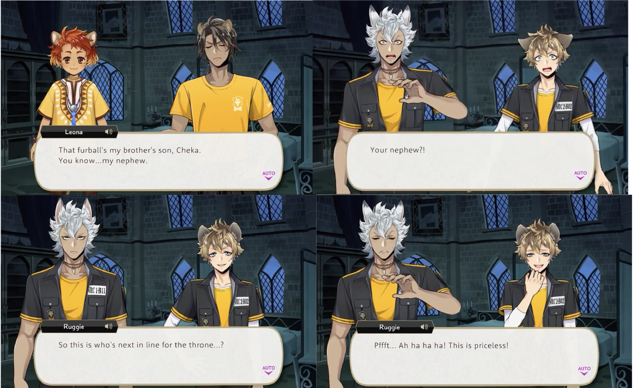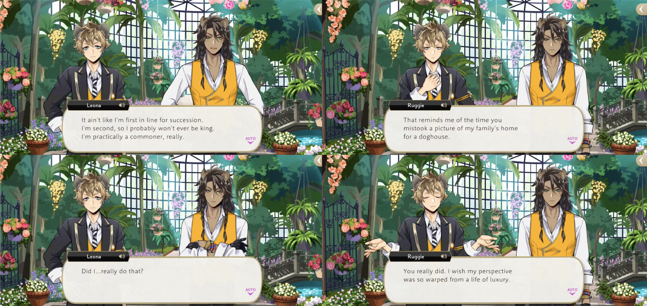 When Leona describes himself as “practically a commoner” for being second in line for succession Ruggie counters by reminding Leona of the time he mistook Ruggie’s home for a doghouse, saying, “I wish my perspective was so warped from a life of luxury.”