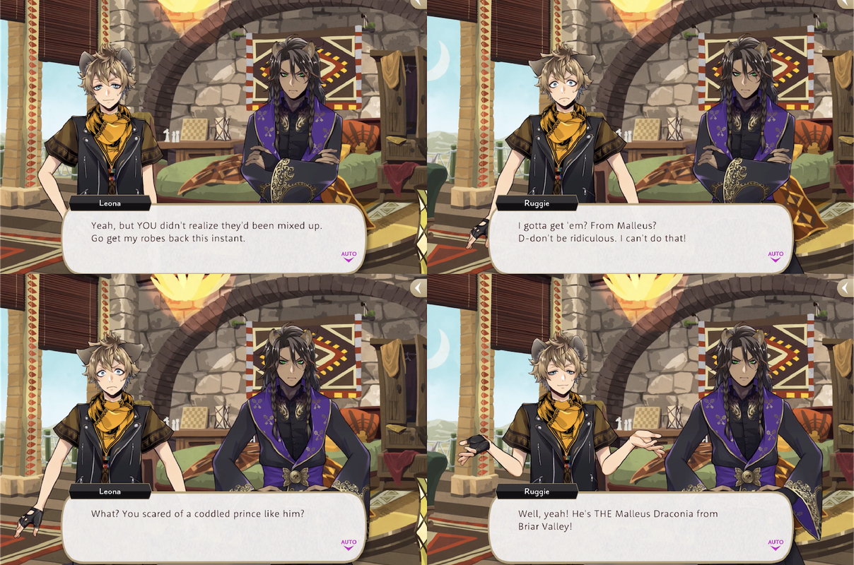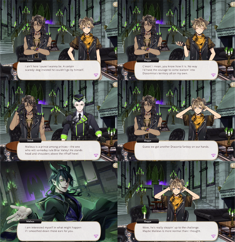 After Leona successfully goads Malleus into a verbal sparring match Ruggie reflects that Malleus might be more normal than he’d thought.