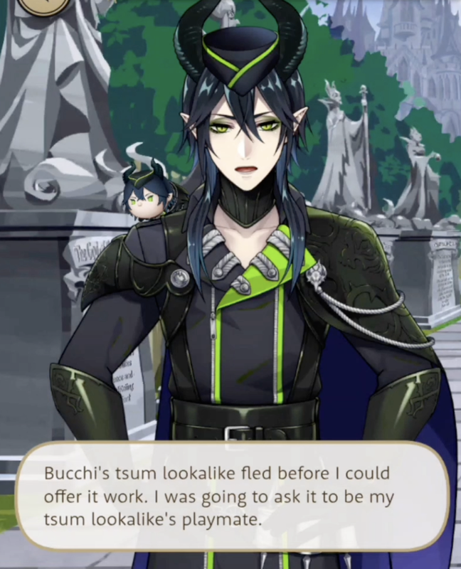 Tsum-Malleus has a voice line of, “Bucchi’s tsum lookalike fled before I could offer it work. I was going to ask it to be my tsum lookalike’s playmate.”
