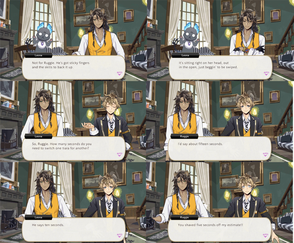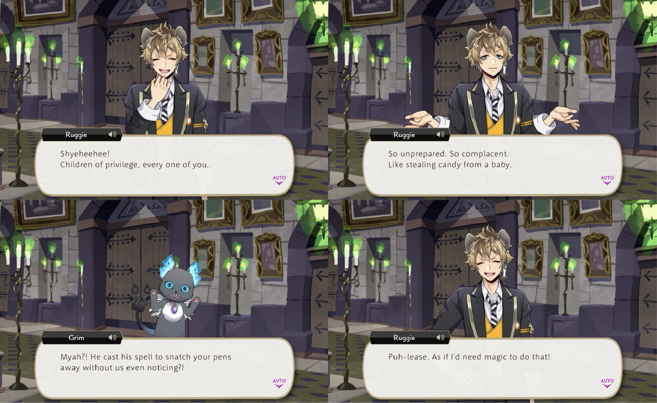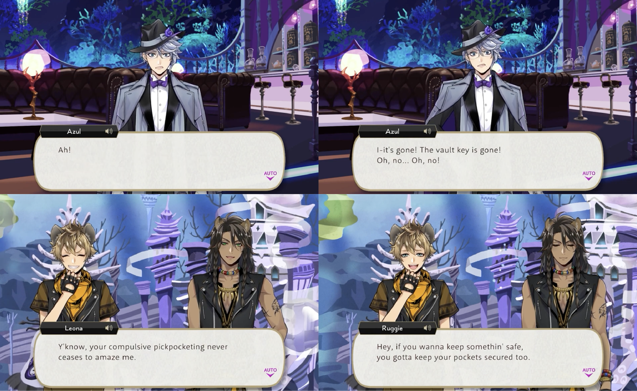 In Book 2 Ruggie steals Cater and Riddle’s magical pens out of their pockets without their noticing, and in Book 3 he steals the key to Azul’s vault. Leona says, “your compulsive pickpocketing never ceases to amaze me.”