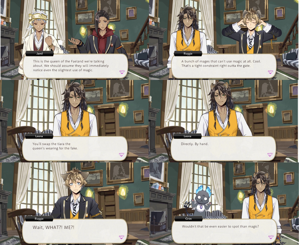 In Book 5 Ruggie refers to the VDC’s guests as “easy marks,” and his pickpocketing is a significant part of Fairy Gala where Leona selects him to join the event in order to swap out the Fairy Queen’s real tiara with a fake one without the use of magic.