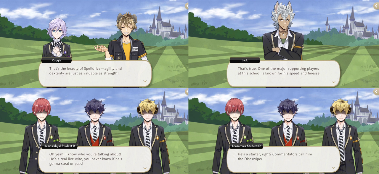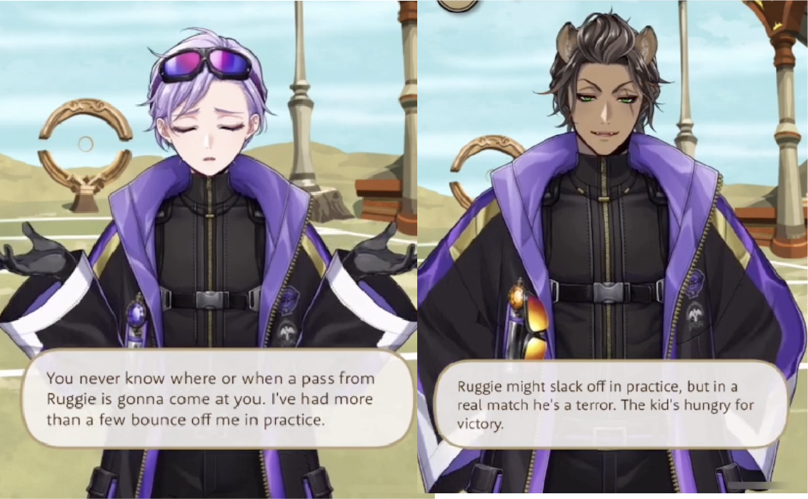 Epel says “You never know where or when a pass from Ruggie is gonna come at you” and Leona says, “Ruggie might slack off in practice, but in a real match he’s a terror. The kid’s hungry for victory”.