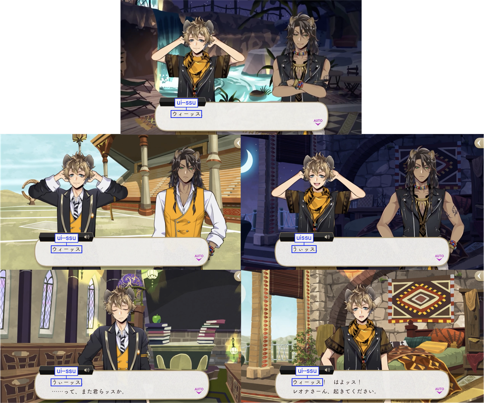 Ruggie will often say ウィッス (uissu), which can be both a laidback greeting and acknowledgement similar to “understood” or “I got it,” very very casual, and he uses it both ways.