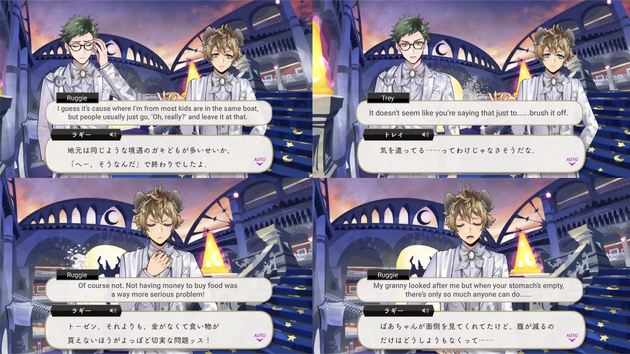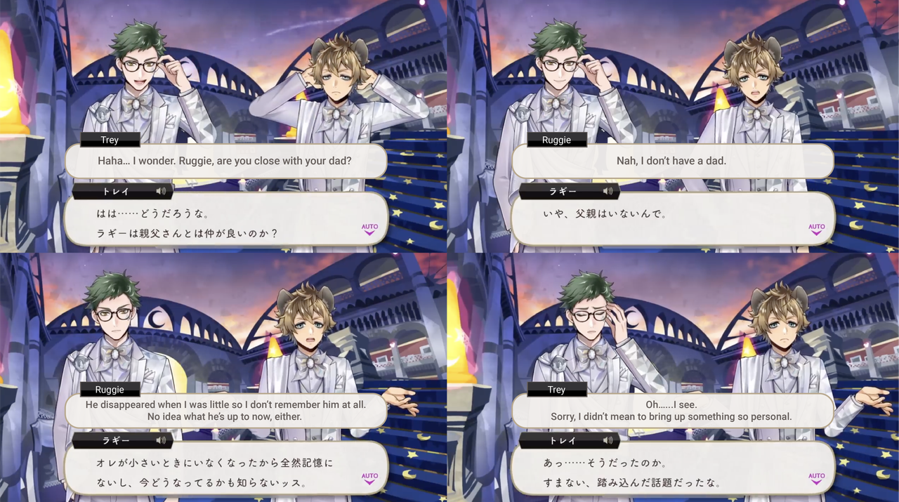 When asked about his father Ruggie says that he doesn’t have one, as he disappeared when Ruggie was so little that he doesn’t remember him. Trey apologies for asking and Ruggie says that most of the children where he grew up were in the same situation, and food scarcity was a larger problem for him.