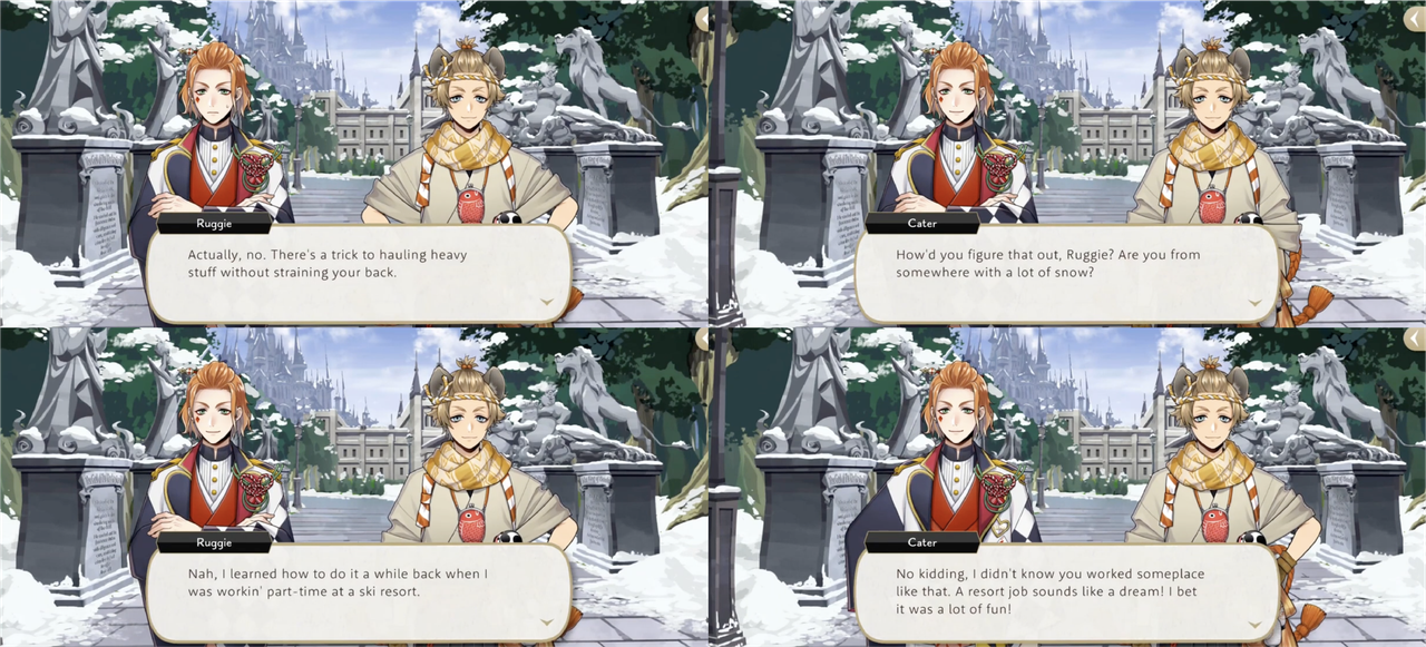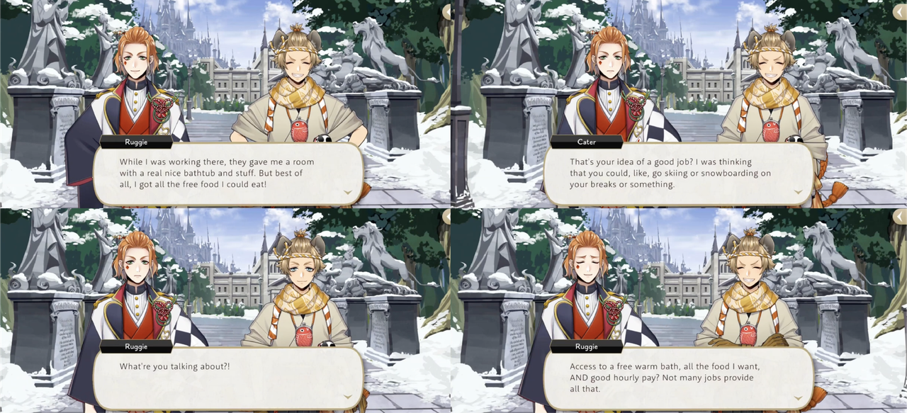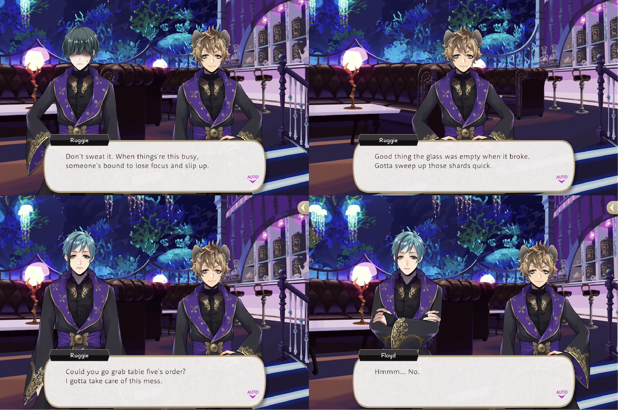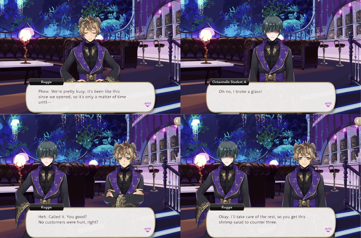 When Azul decides to temporarily close the lounge due to a large influx of customers Ruggie suggests sending staff working the floor into the kitchen, volunteering to cover for the loss of manpower himself.