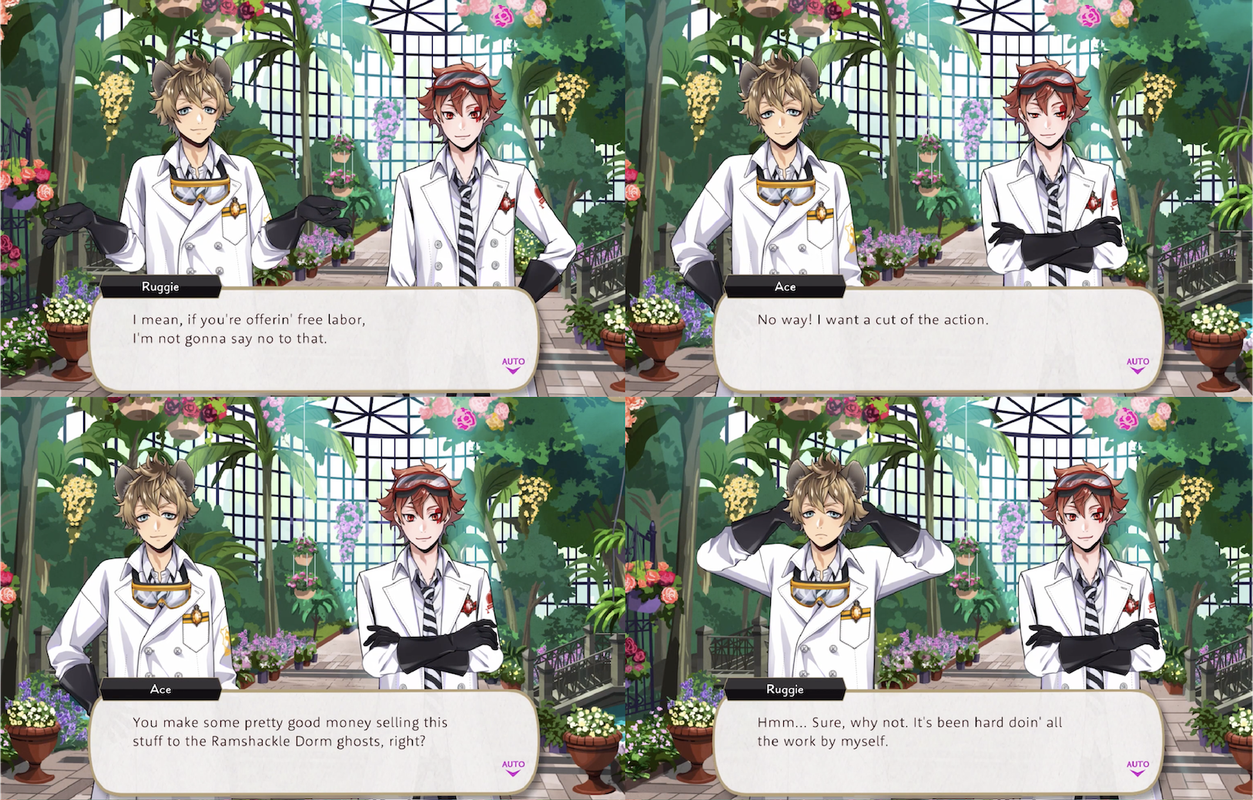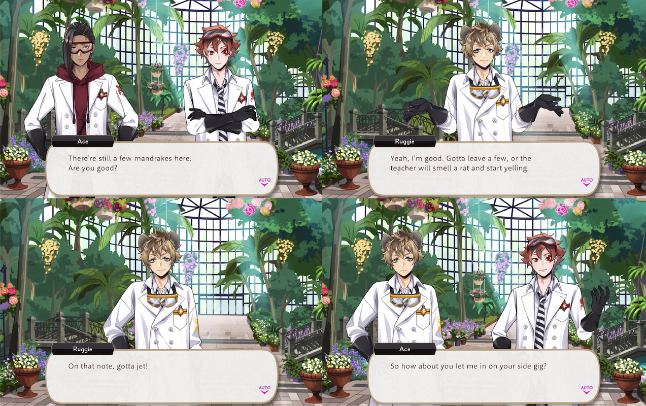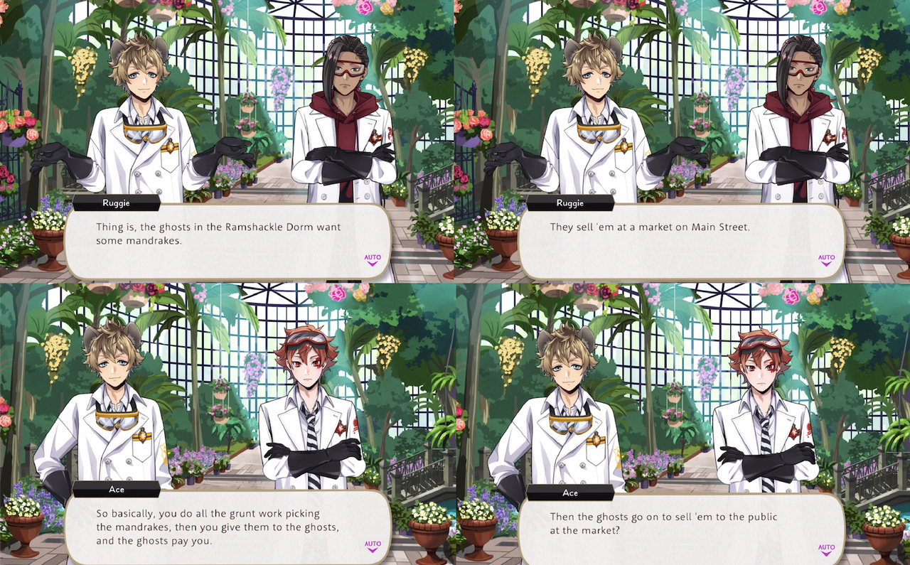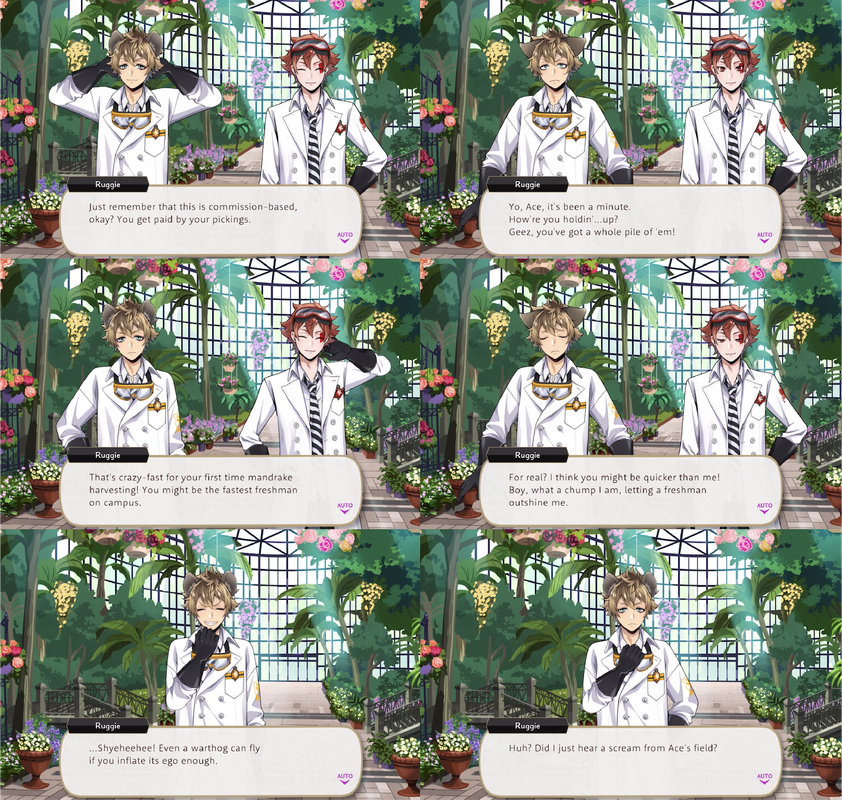 At NRC Ruggie sells mandrakes from the botanical gardens to the Ramshackle Dorm ghosts, and in a vignette Ace asks to be let in on the side business.