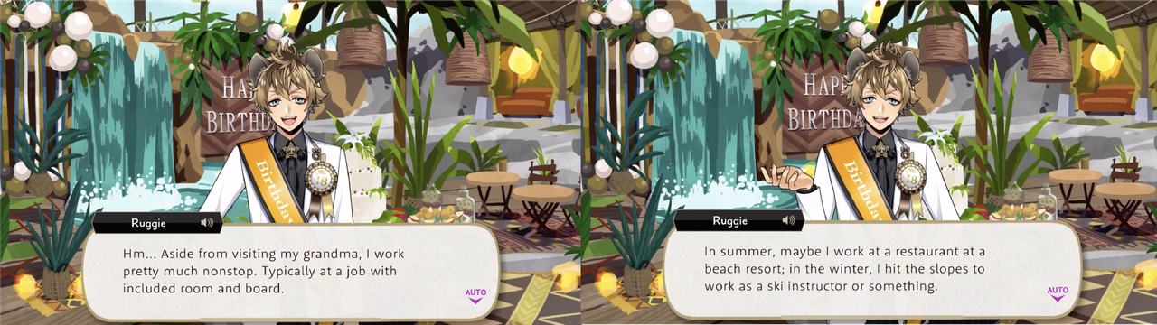 Ruggie seems to occasionally work at Mostro Lounge and might be a regular employee. We see an example in a vignette where he covers for another employee who breaks a glass and manages to convince a bored Floyd to go back to work.