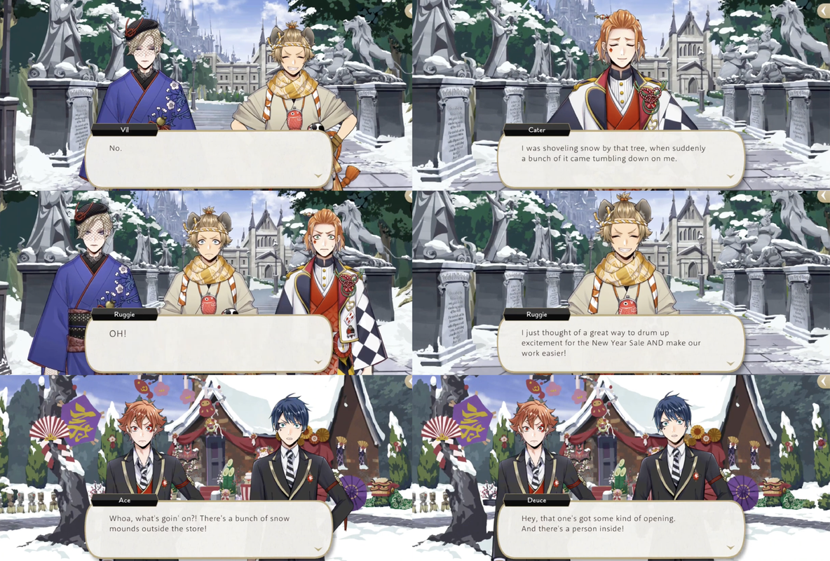 Ruggie is envious of Kalim and Deuce’s part-time jobs at the school store during New Year’s, saying that it pays incredibly well.