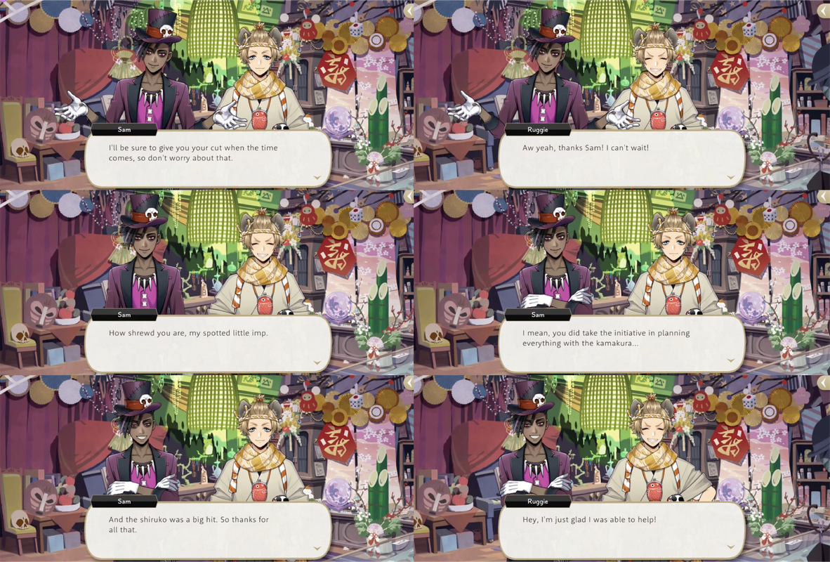 It is revealed that Ruggie worked out a deal with Sam where he would receive 30% of profits from the shiruko sales in exchange for teaching the recipe to Sam.