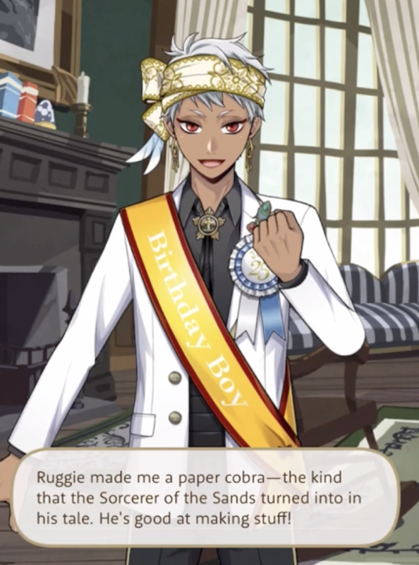 When trying to think of a way to boost sales at the store Ruggie suggests folding “a warthog or something” out of wrapping paper. (Ruggie gifts Kalim with a paper cobra for his birthday; is origami maybe a skill of his?)