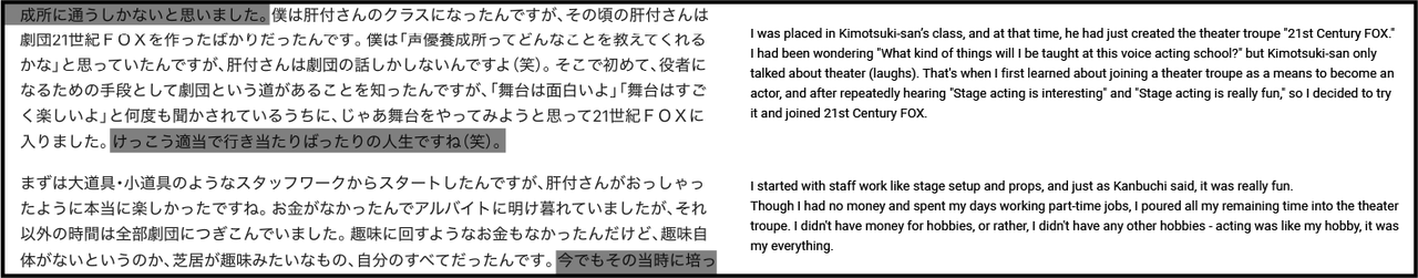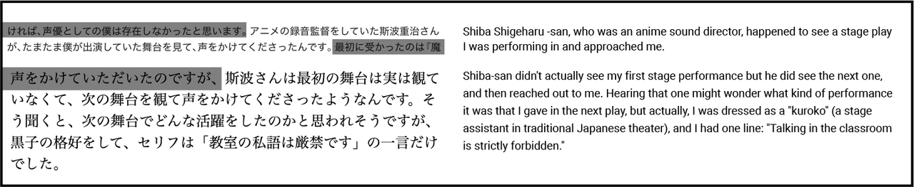 He joined a voice acting school where his teacher would often recommend live theater, and ultimately joined his teacher’s theater troupe. (His teacher was Kimotsuki Kaneta, who had roles in projects such as Astro Boy, Doraemon, and Galaxy Express 999, and dubbed characters such as Scuttle in The Little Mermaid, Jiminy Cricket in Pinocchio and Friar Tuck in Robin Hood.)( Interview Source )