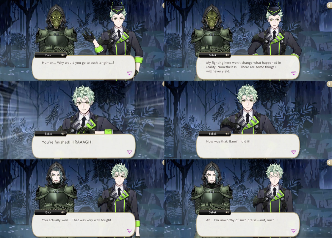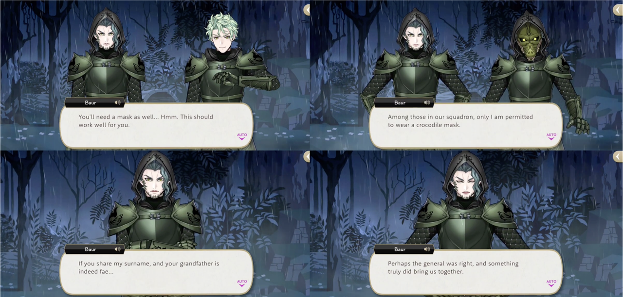 Baul explains, “Among those in our squadron, only I am permitted to wear a crocodile mask.” He dubs Sebek a “half-fae warrior” and encourages him to continue fighting as well as he has been.