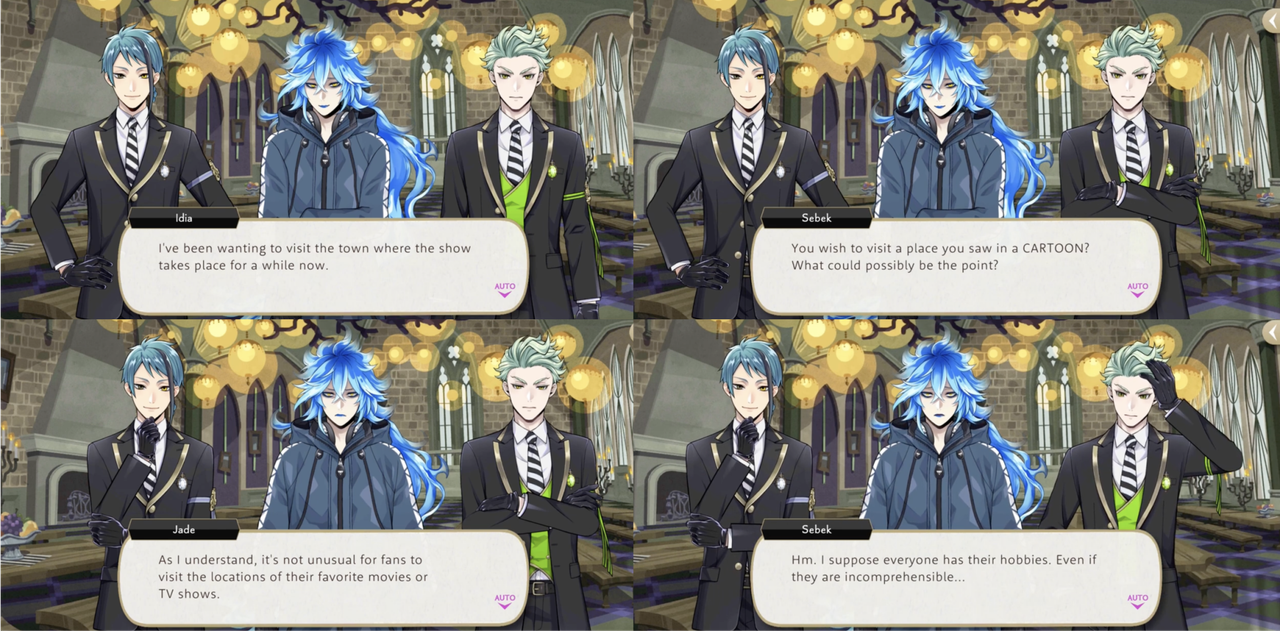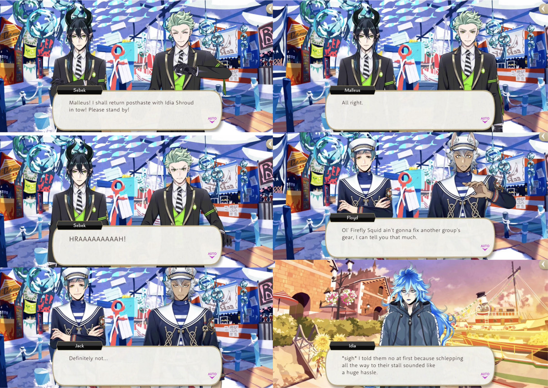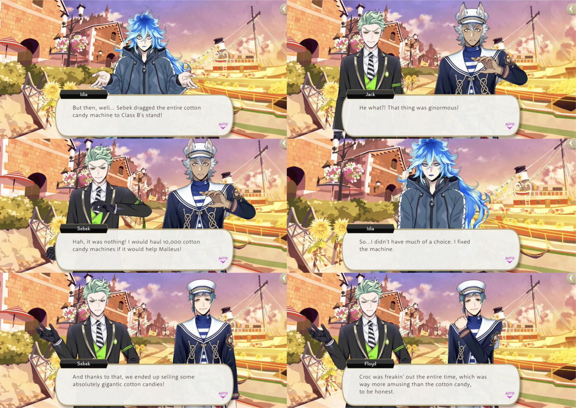 The Harveston event is possibly where Idia and Sebek overlap the most, with Sebek (and Epel) physically forcing Idia to the village against his will at Ortho’s behest.