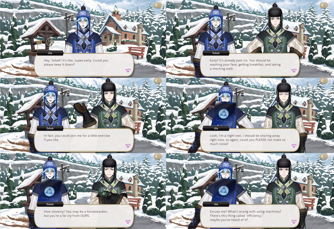 Sebek tells Idia that past 6am he should be washing his face, getting breakfast and taking a morning walk, suggesting that they exercise together. When Idia refuses, telling him to be quiet, Sebek responds, “You may be a housewarden, but you’re a far cry from OURS.”