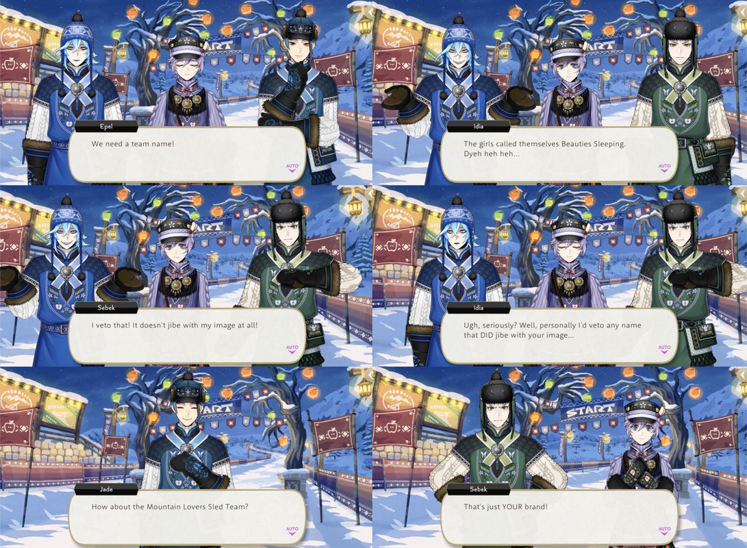 Idia: “Well, personally I’d veto any name that DID jibe with your image…” (Sebek also rejects Jade’s suggestion of “Mountain Lovers Sled Team.”)