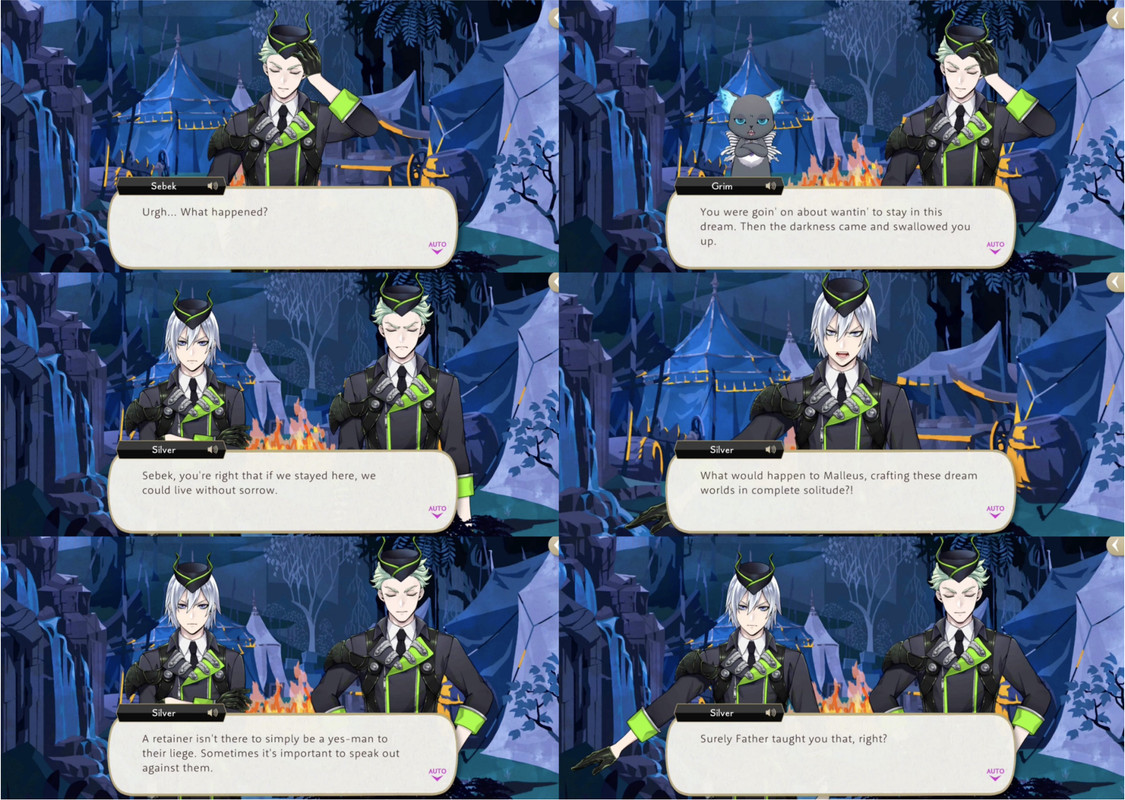 Afterwards, Silver admits that what Sebek said made him waver, and he too started to believe that staying in their current dream might make Malleus and Lilia happy.