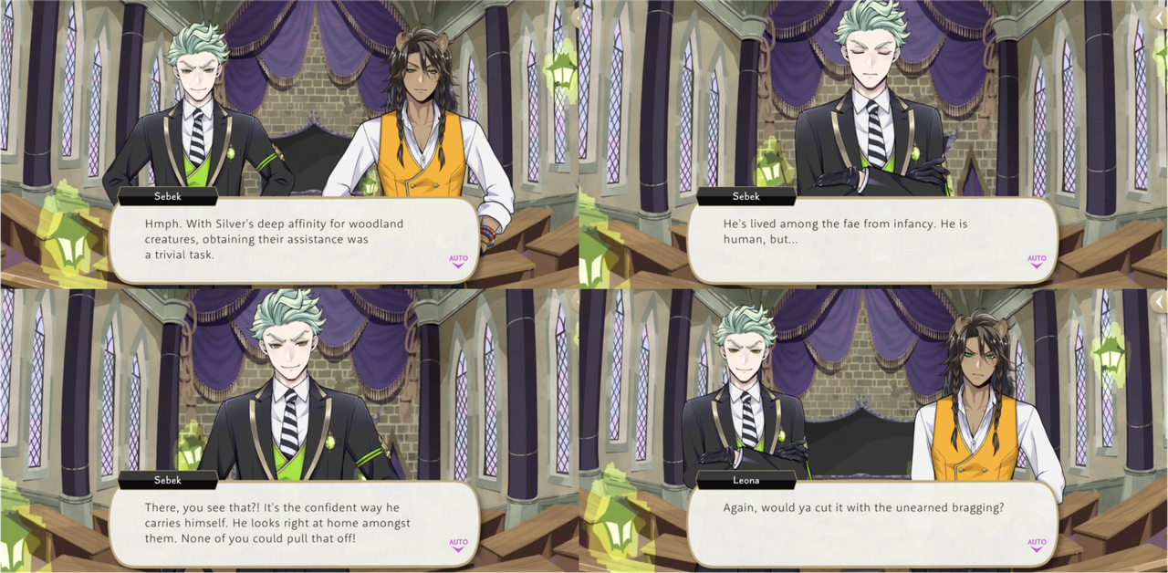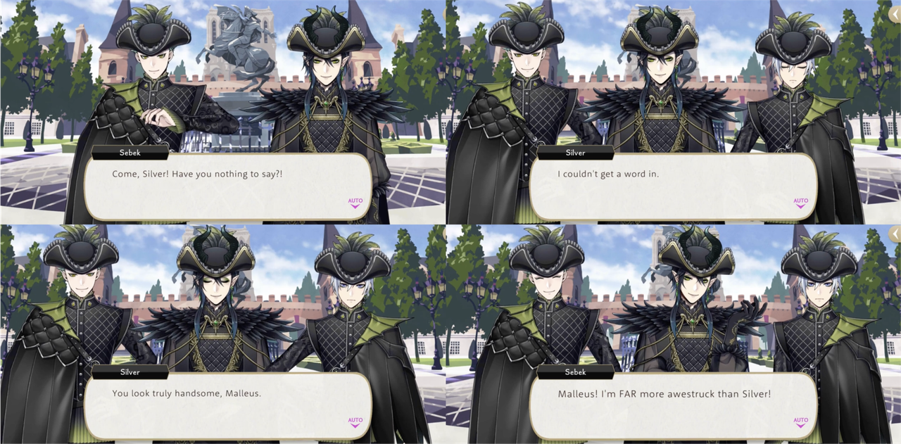 After a long monologue on Malleus’ beauty Sebek encourages Silver to praise him as well. Silver says he couldn’t get a word in, assures Malleus that he looks truly handsome and Sebek interjects with, “I’m FAR more awestruck than Silver!”