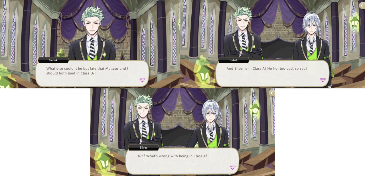 Sebek is delighted to be in the same group as Malleus for Port Fest, saying, “And Silver is in Class A? Ho ho, too bad, so sad!” (Silver: “What’s wrong with being in Class A?”)