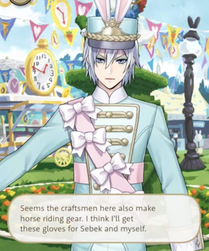 Silver discovers that the craftsmen of Clock Town also make horse riding gear and purchases gloves for both Sebek and himself.