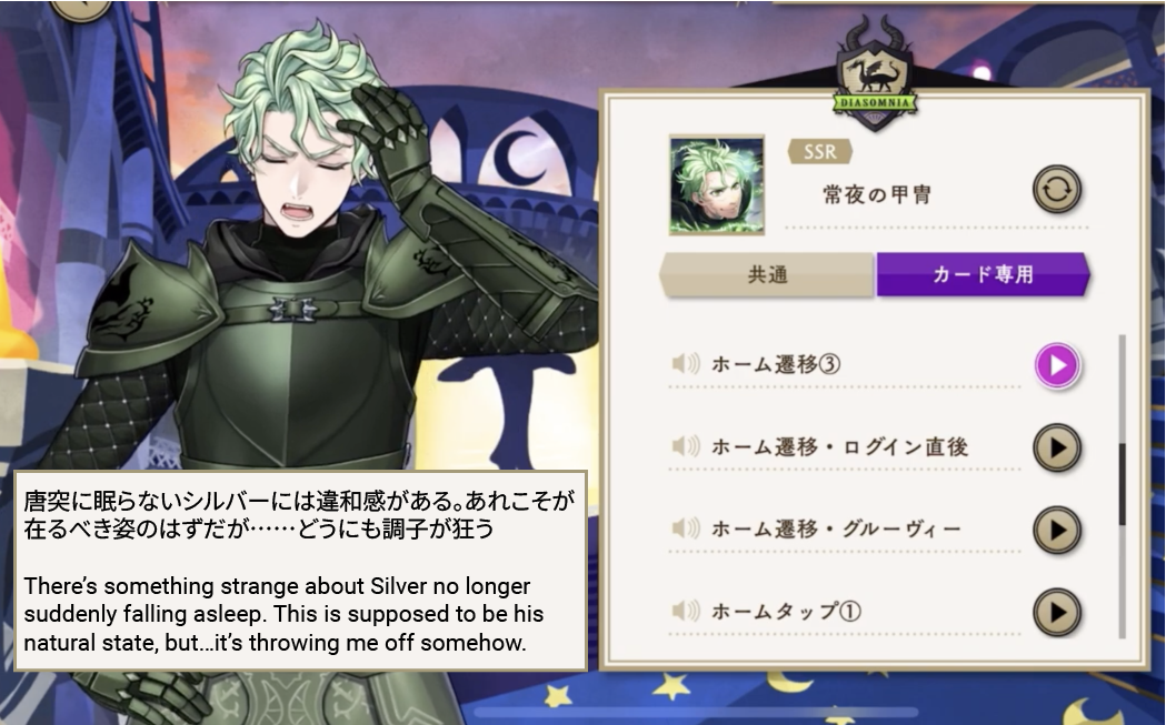 Sebek has a voice line based on Book 7 about how he is so used to Silver following asleep without warning that his natural state is throwing hm off.
