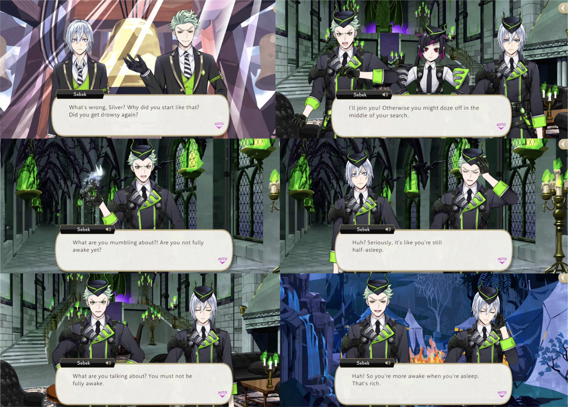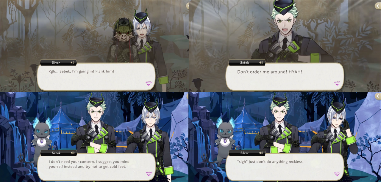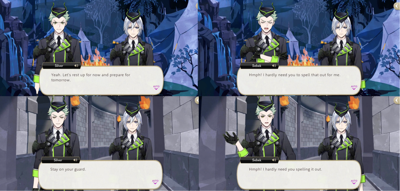The two manage to work together to fight Lilia in his dream, but Sebek disapproves of Silver giving him orders. He also rankles at Silver expressing concern for him, telling him to mind himself, instead, is displeased when Silver encourages him to rest and when Silver tells him to be careful in the citadel.