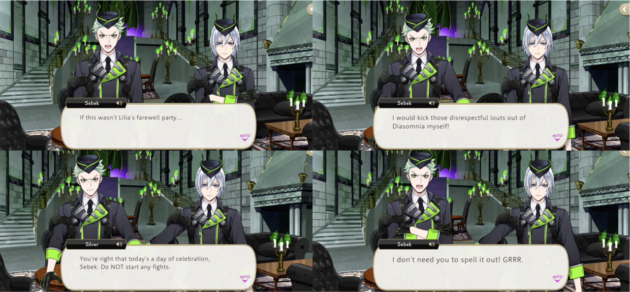 During Lilia’s farewell party Sebek says he would kick the “disrespectful louts” that are Ruggie and Leona out of Diasomnia himself, but Silver forbids it. Sebek is not pleased.