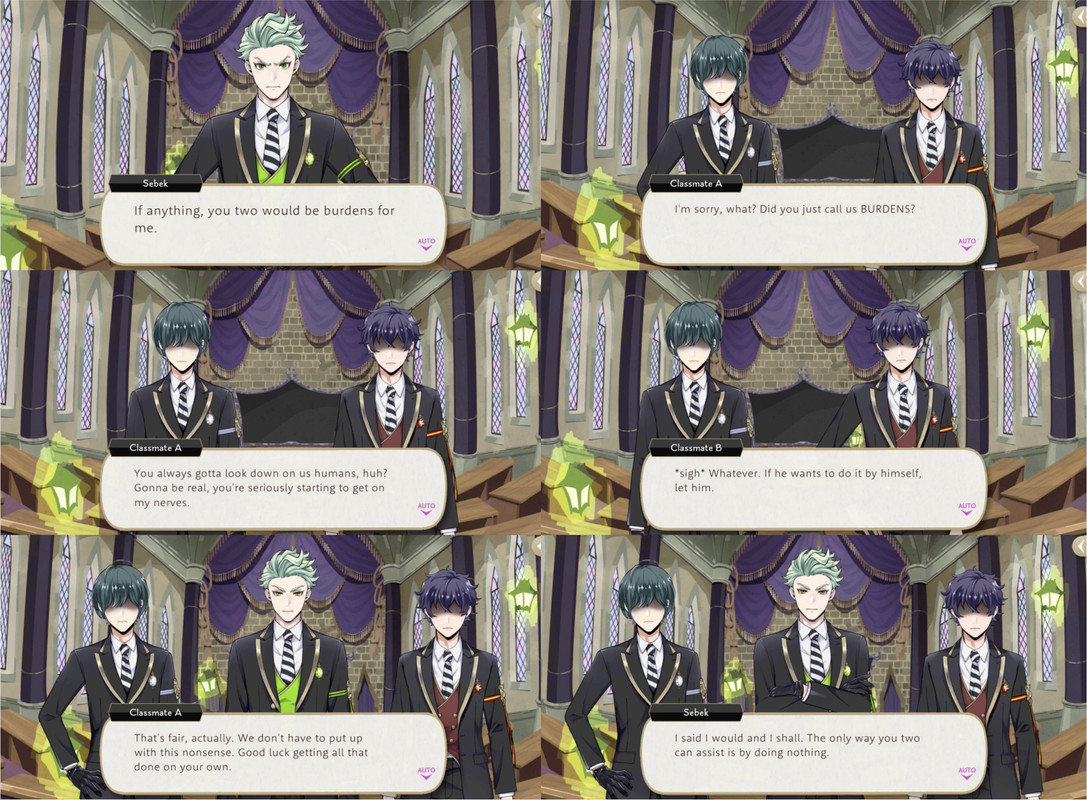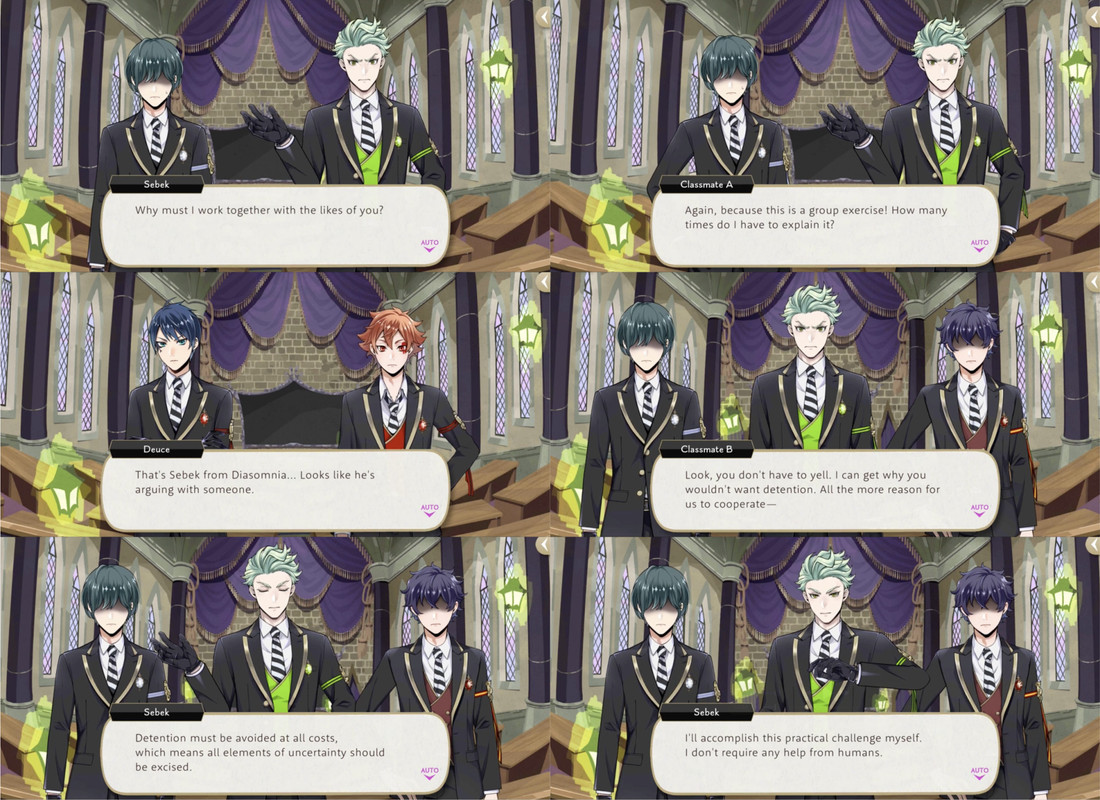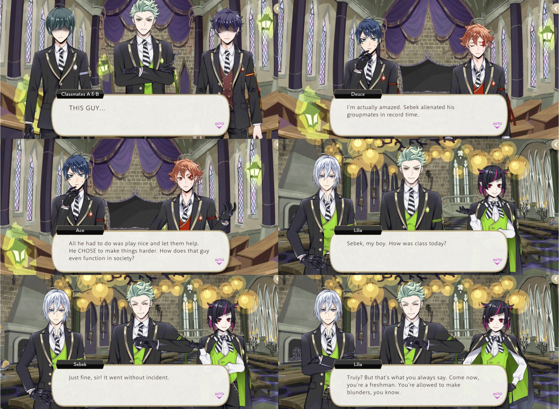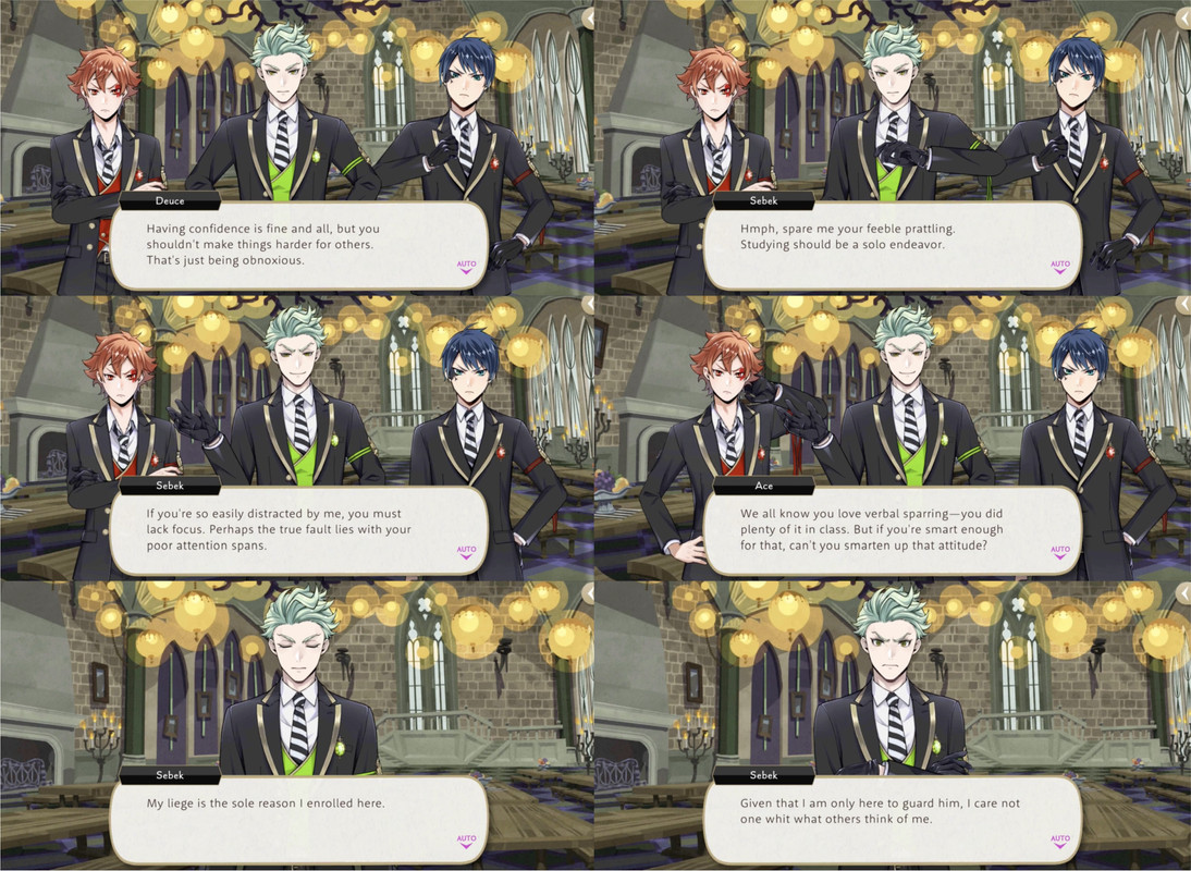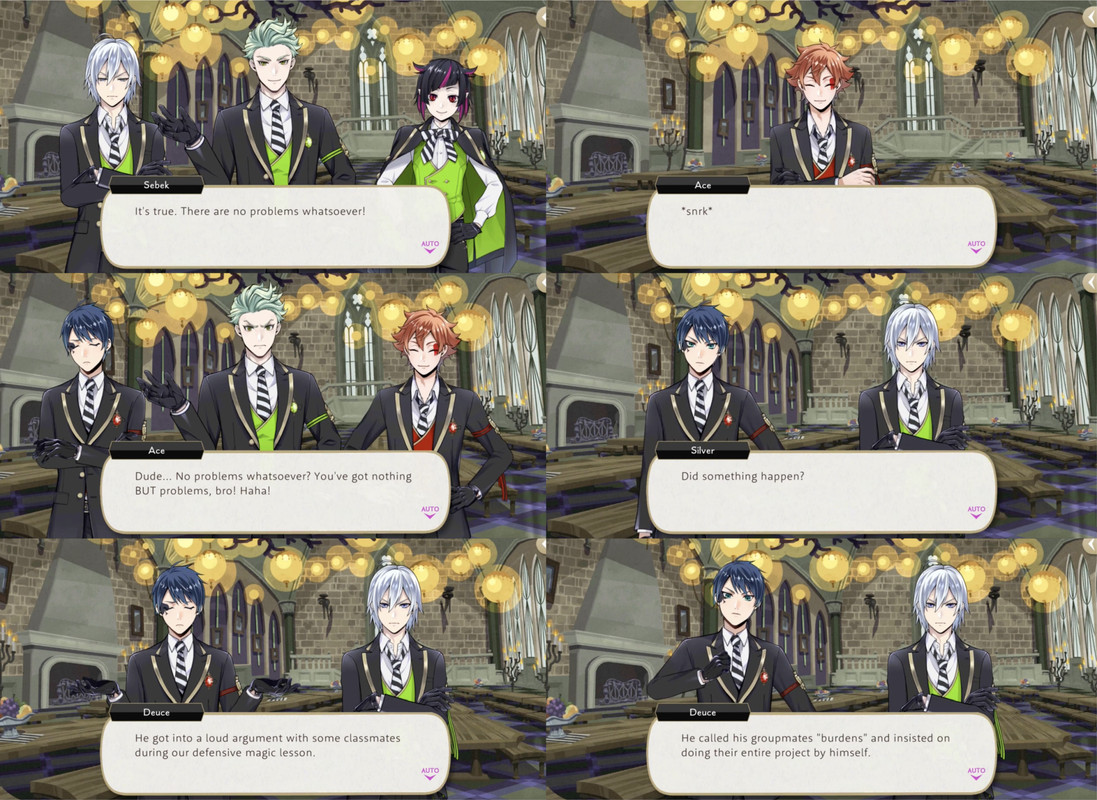 Deuce and Ace excuse themselves and Silver reflects, “I thought coming to this school would help improve Sebek’s attitude toward others…but he’s the same as ever-completely disinterested in making friends with people outside of Briar Valley.”