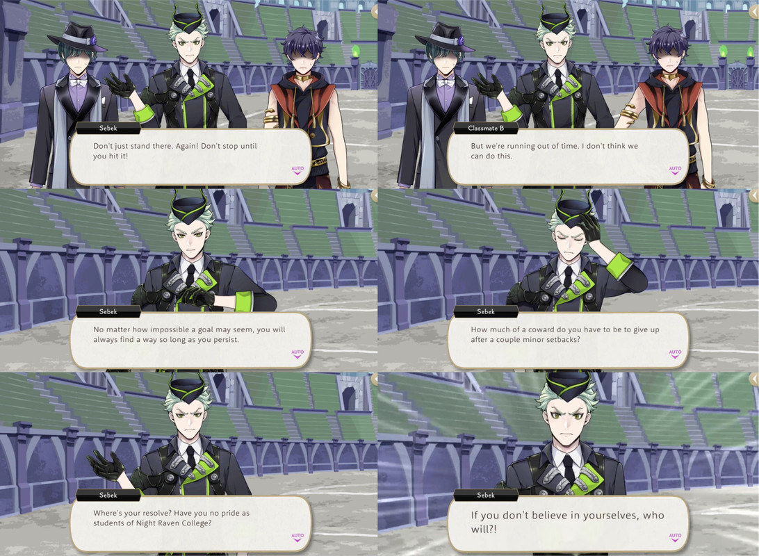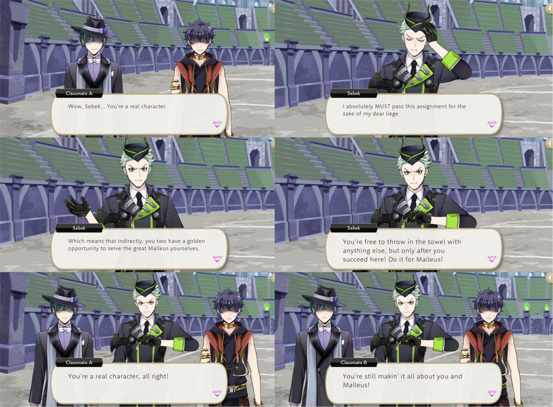 Sebek seems to successfully motivate them through a pep talk (“If you don’t believe in yourselves, who will?!”) but this progress is dampened by his insistence that the two students should be working hard for Malleus.