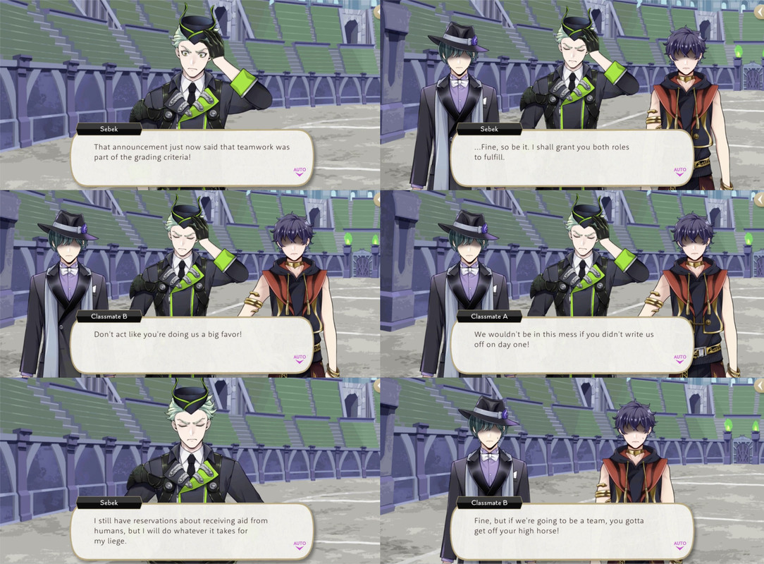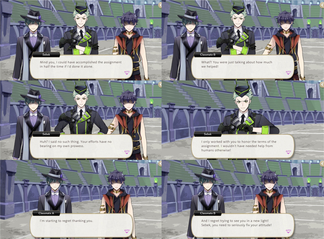 One team member responds “I’m starting to regret thanking you” while the other says, “And I regret trying to see you in a new light! Sebek, you need to seriously fix your attitude!”