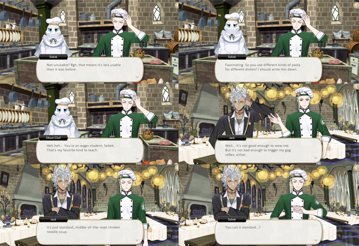 Sebek is interested to learn that different kinds of pasta are used for different dishes and the ghost chef calls him an eager student, saying, “That’s my favorite kind to teach.”