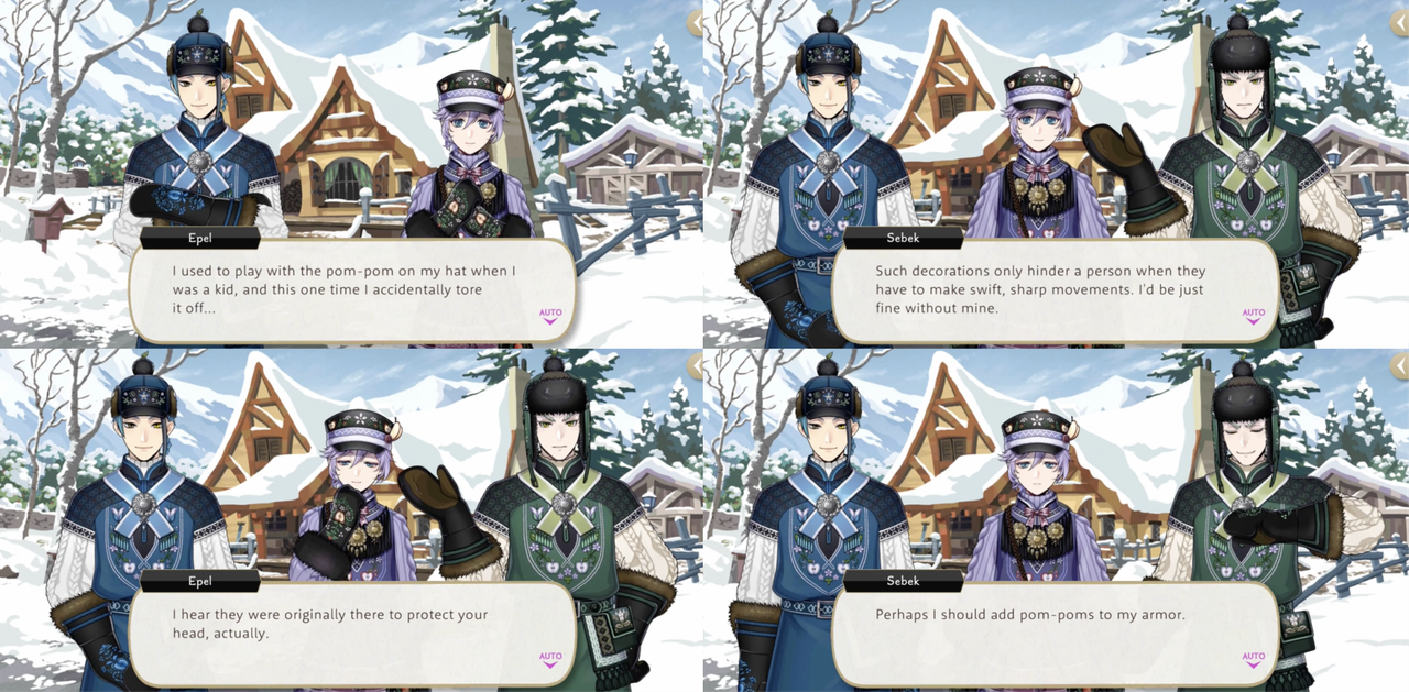 Sebek talks about potentially attaching pom-poms to his armor for added protection, and it is possible he has no interest in fashion: he has a voiceline of, “What clothes suit me best? You know, I’m not sure. I simply wear what I’m given.”