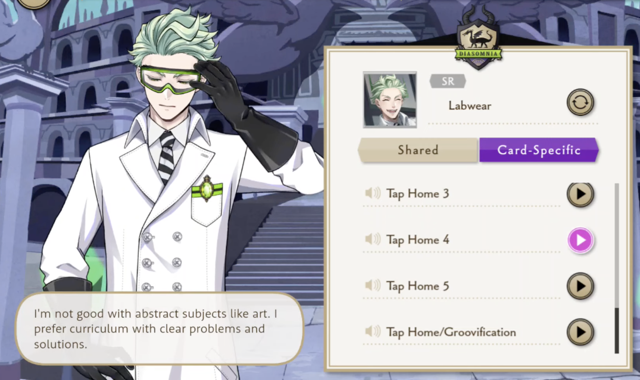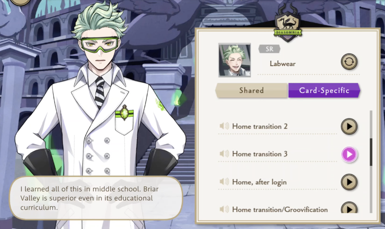 He has a voice line saying, “I learned all of this in middle school. Briar Valley is superior even in its educational curriculum”, insinuating he performs well in some classes, but he also says he is “not good with subjects like art. I prefer curriculum with clear problems and solutions.”