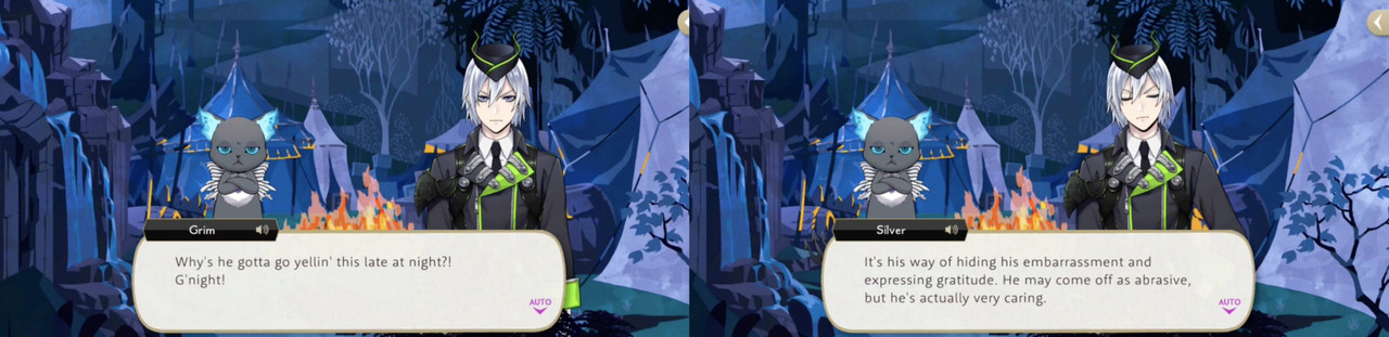 Grim asks about Sebek’s yelling and Silver says, “It’s his way of hiding his embarrassment and expressing gratitude. He may come off as abrasive, but he’s actually very caring.”
